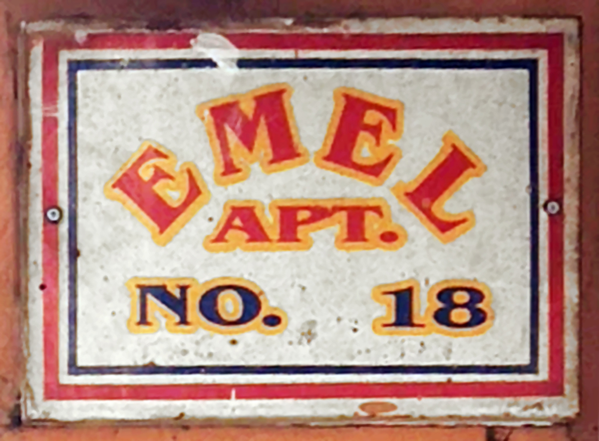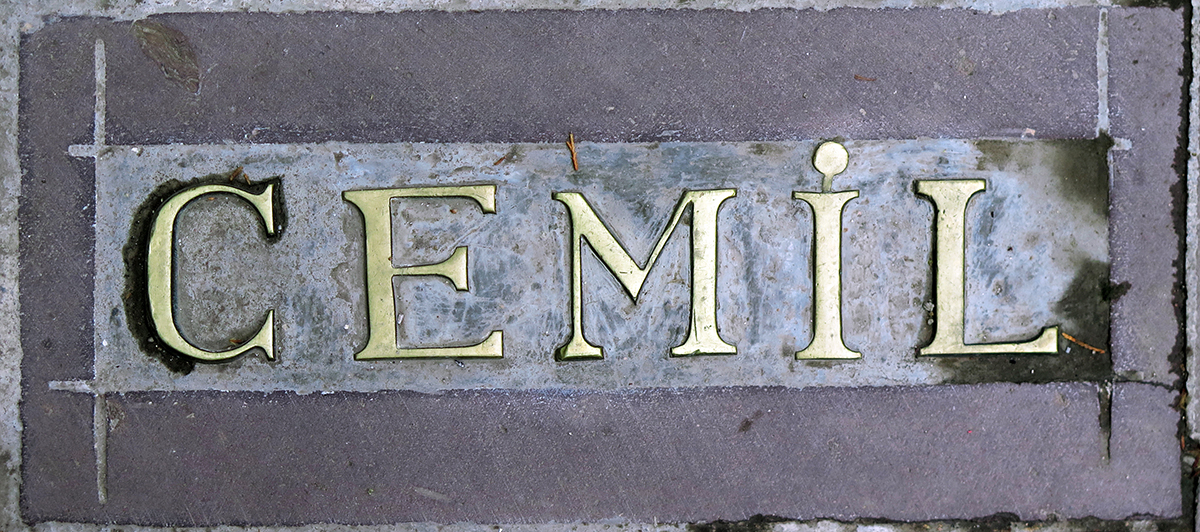 Cemil / Elegant (Name), Ankara. Not an apartment sign, but a metal sign on a pavement.