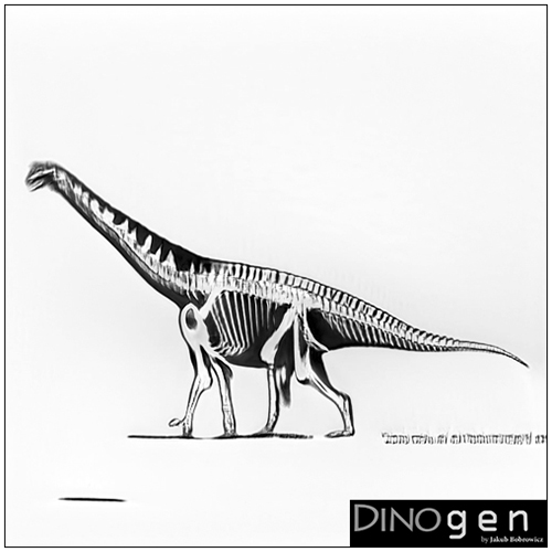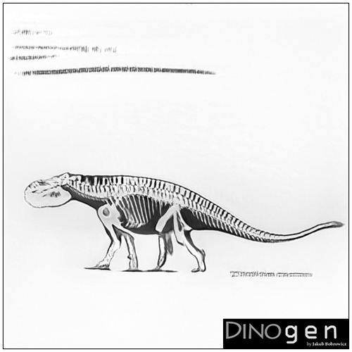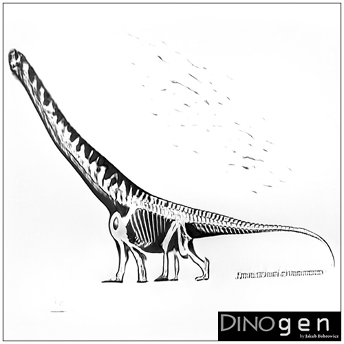 Dinogen is an A.I. created and trained by Jakub Bobrowicz to generate skeletal drawings of random dinosaur-and-archosaur-like creatures. Below are a number of images created by this program. Check back often - this selection is being updated regularly!