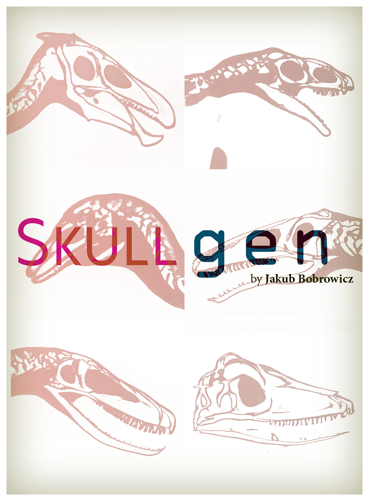 Dinogen and Skullgen are A.I. algorithms trained by Jakub Bobrowicz on libraries of dinosaur skeletal drawings and skull diagrams. As result of their training, the algorithms created hundreds of imaginary, dinosaur-like forms. You can freely access the two image libraries below to view the results of Dinogen and Skullgen.