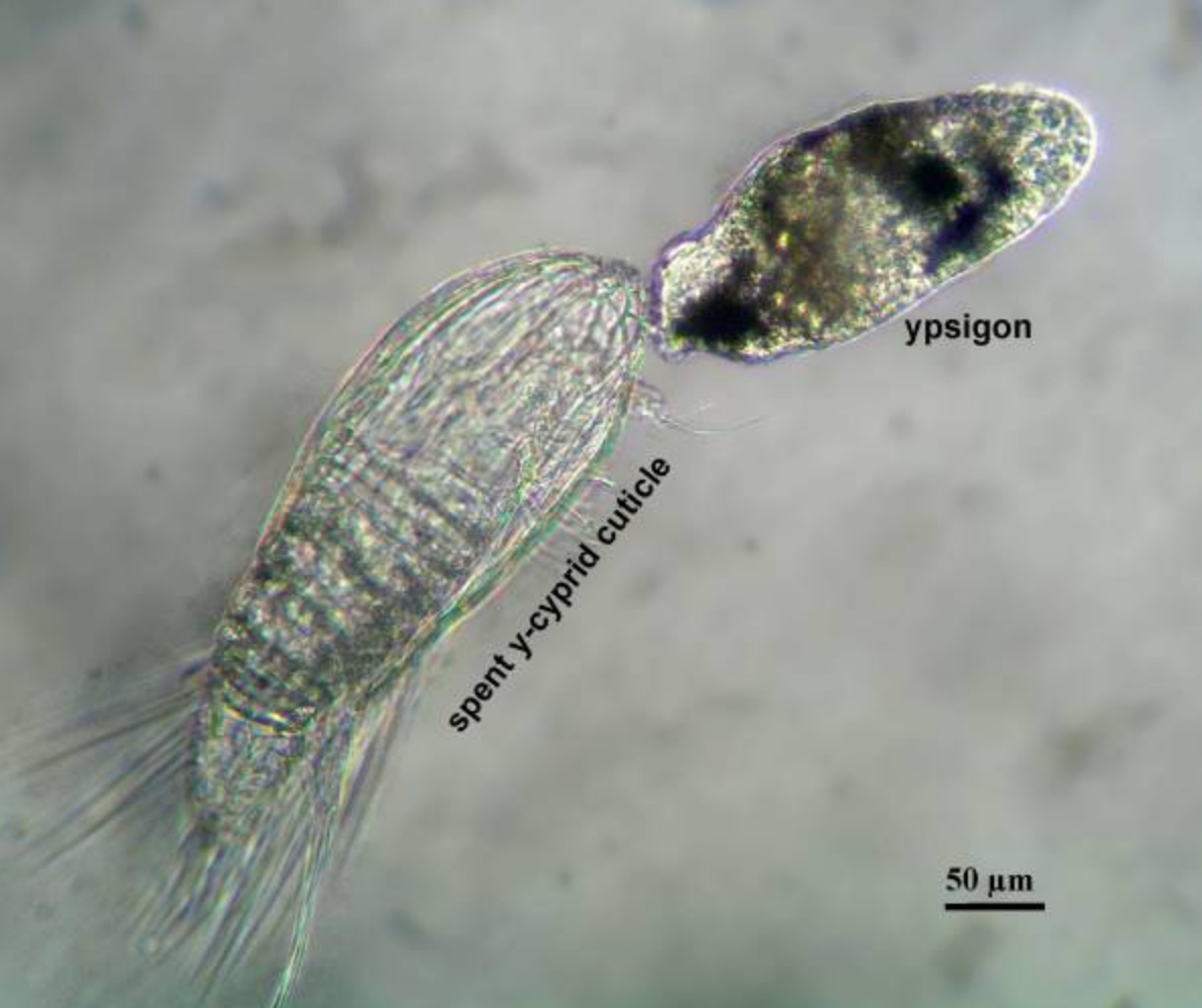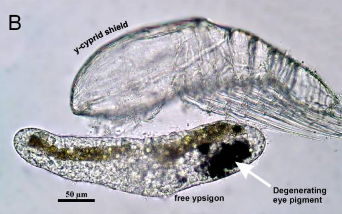 Under the influence of the hormone, the y-cyprids molted, and disgorged a degenerate, vaguely slug-like form which the researchers named a ypsigon.