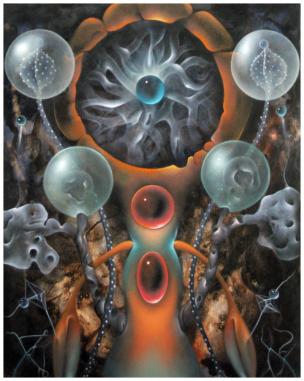 Different species of y-cyprids turned into different ypsigons after being treated with the H-20 hormone. Here, a "fat" y-cyprid disgorges a similarly chubby ypsigon.