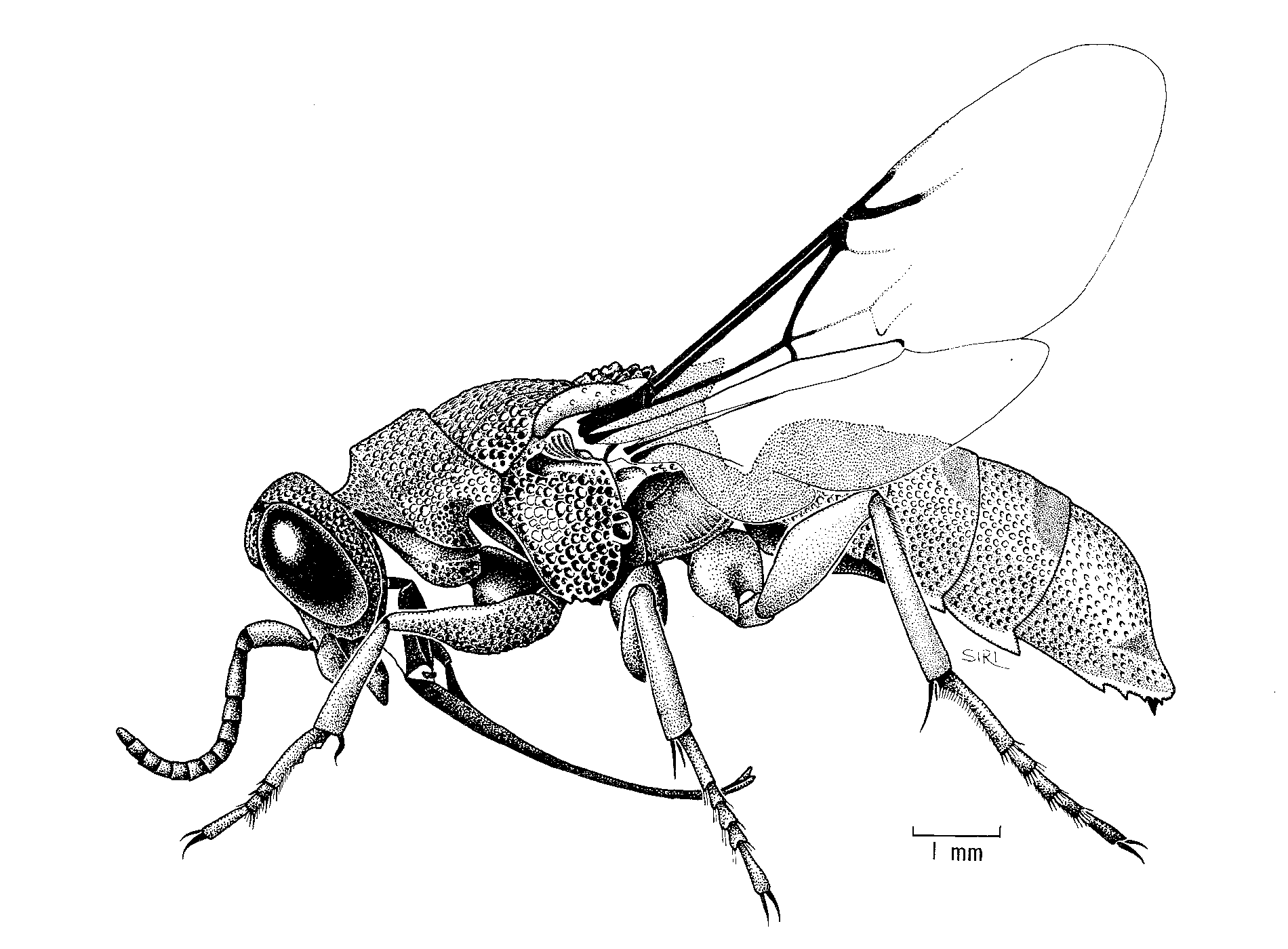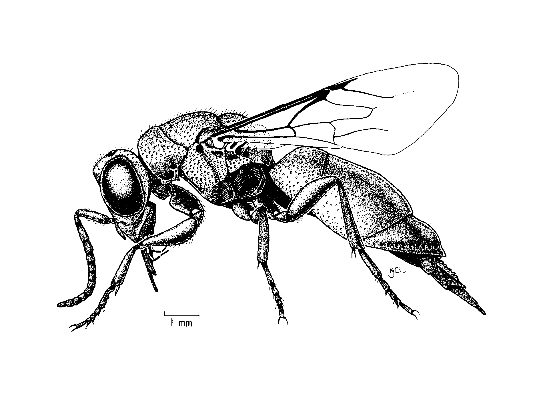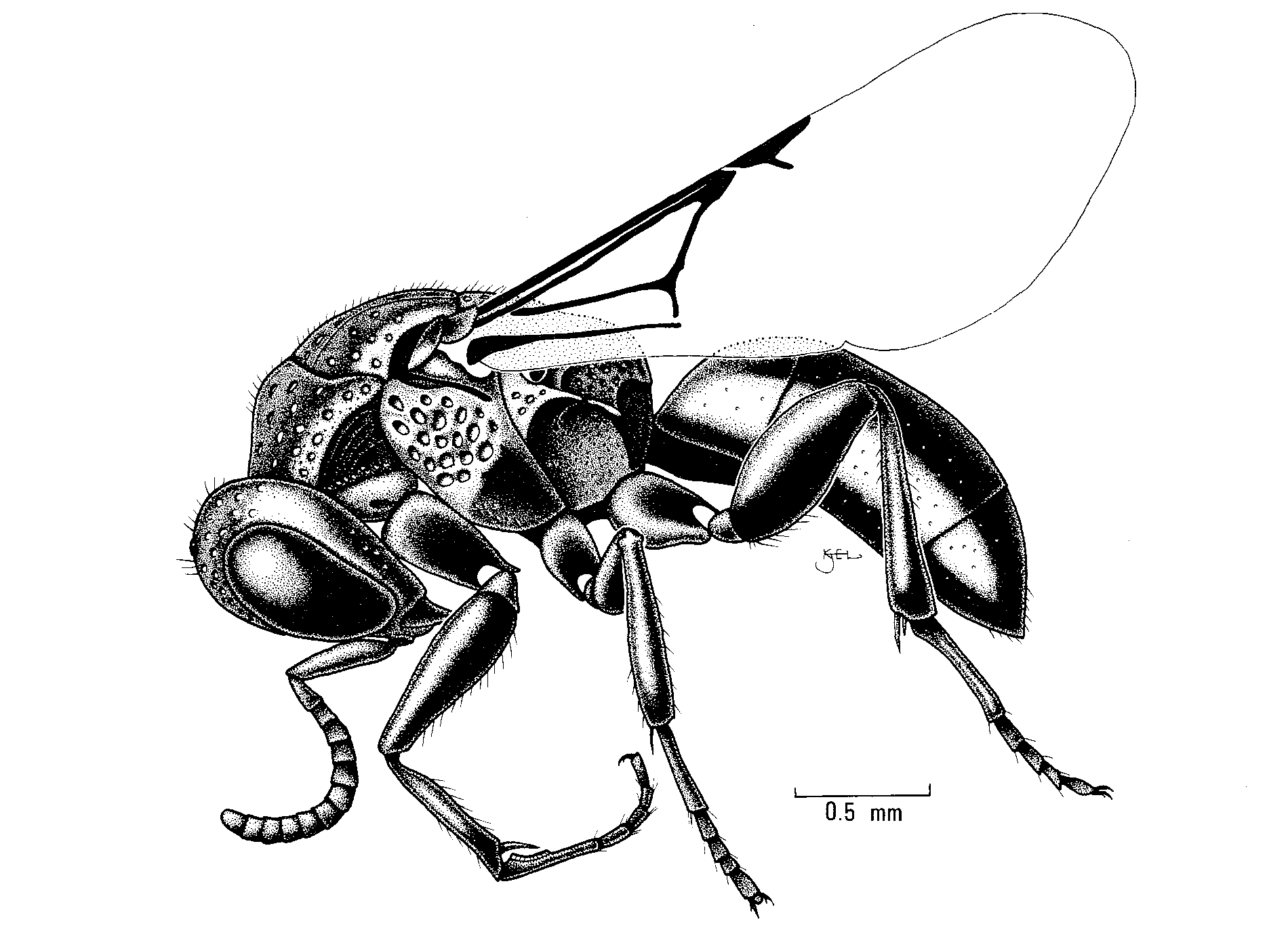 Beautiul artwork of Chrysidid wasps by Karen English-Loeb Source: Lynn S. Kimsey, The Chrysidid Wasps of the World, Oxford Science Publications, 1990.