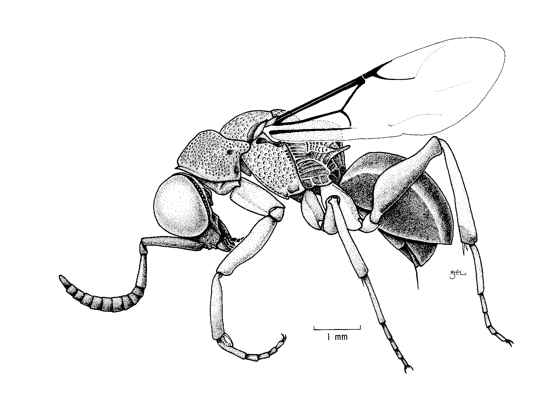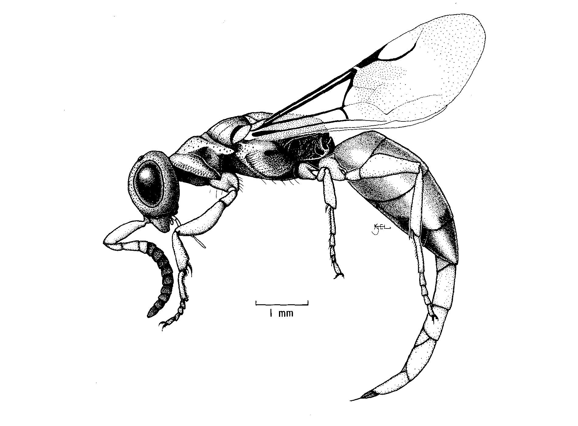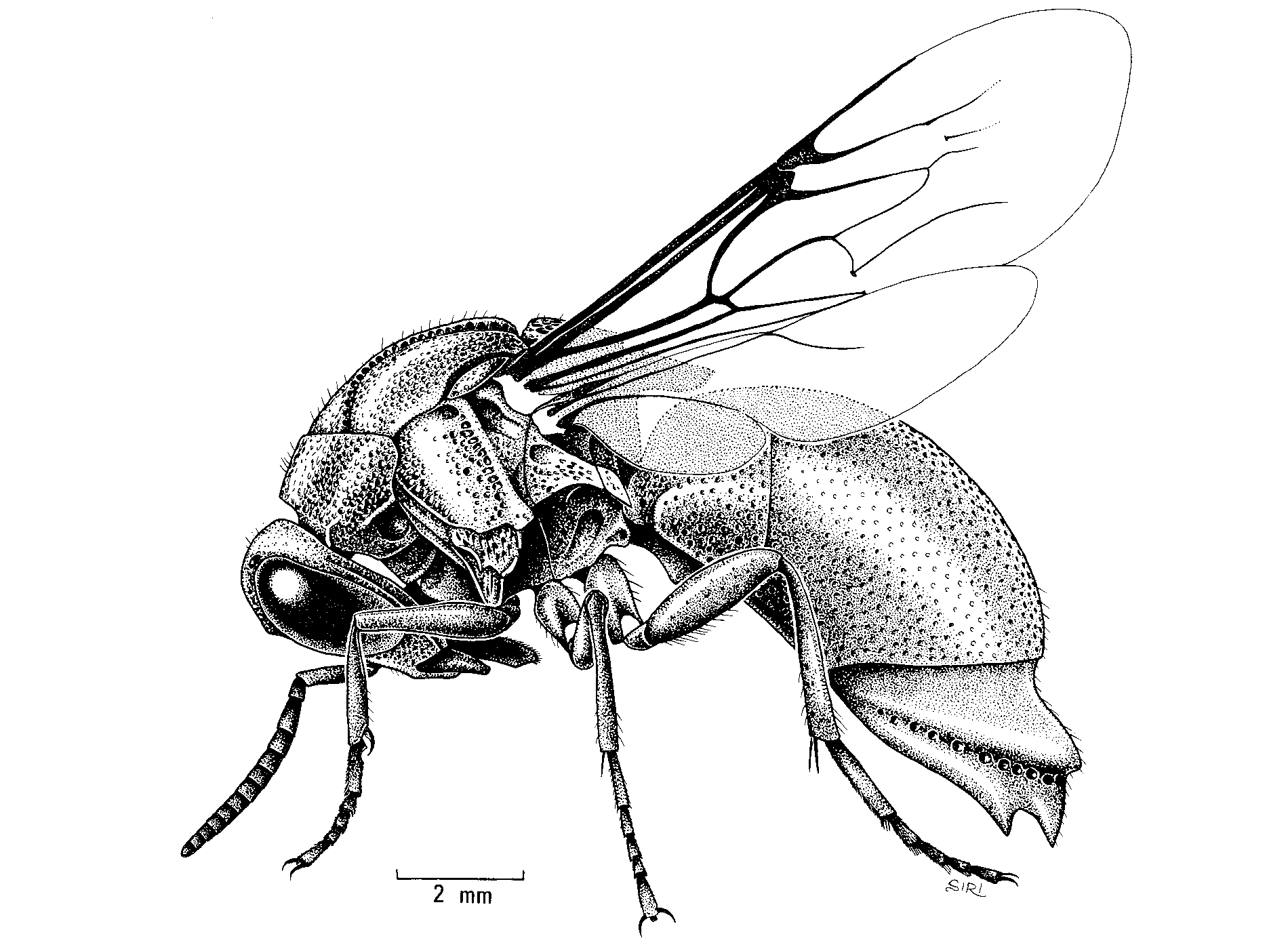 Beautiul artwork of Chrysidid wasps by Karen English-Loeb Source: Lynn S. Kimsey, The Chrysidid Wasps of the World, Oxford Science Publications, 1990.
