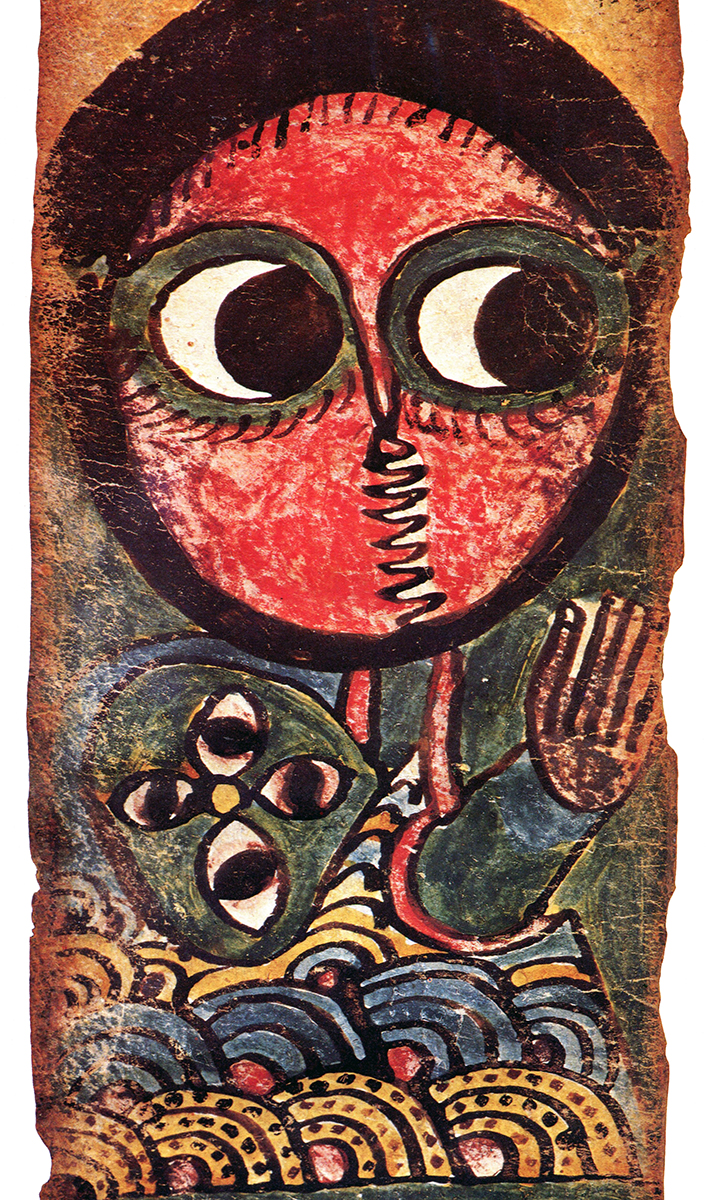 The amazing diversity of Australian peacock spiders Artwork by Agnes Pelton (1881-1961) Artwork by Frantisek Kupka (1871-1957) Malay depictions of jinns The art of cattle painting among Kenya's Turkana people Freaks and monsters from Dünyayı Kurtaran Adam (Turkish Star Wars) (1982) Humanoid lepidopteran monster from The Blood Beast Terror (1968) Surreal art by Alessandro Keegan Vista of Jurassic life The great mural of prehistoric life at Istanbul Technical University (ITU) Images depicting Turanist monument from the 1940s South American vistas from Kaktusy, Czechcacti journal Palaeoart by Petr Modlitba at the Czech Natural History Museum Illustrated fly collection boxes by E. H. Compton Before Tesla, there was Anadol Tail-less crocodylians An eccentric house from Bodrum, Turkey Landscape with fungi and flowers Nausea A concert of birds, angels and demons from the Book of Solomon by Firdausi of Bursa Demons and monsters from Middle-Eastern incantation bowls Landscape photographs from Istanbul and Anatolia during the 1920s Ethiopian magic scrolls A selection of Ethiopian magic scrolls from various sources. These highly-stylised depictions of saints, animals, demons and angels are believed to combat sickness, bad luck and demonic possession in Ethiopian folk religion.