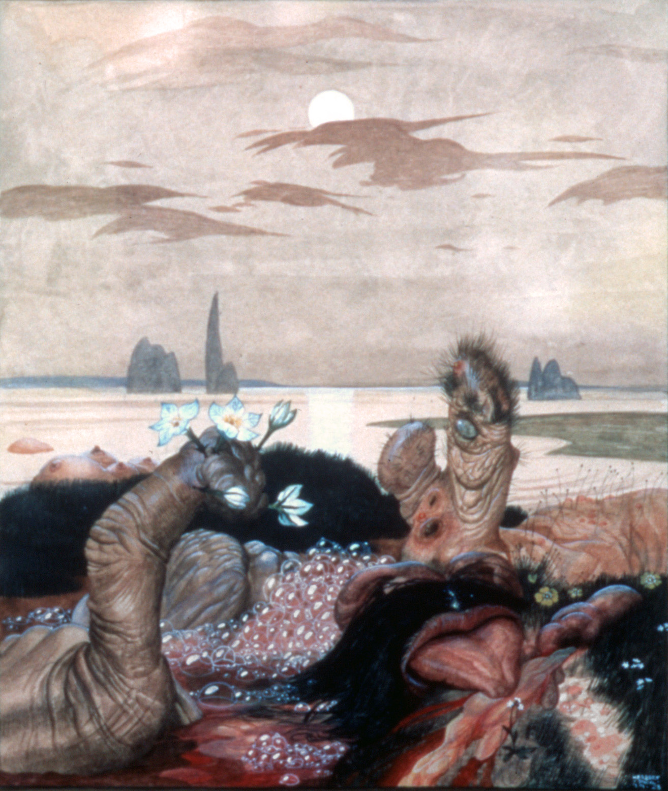 Splendid illustration of two human-descendant carrion-eaters, known across the Ringworld as "Ghouls".