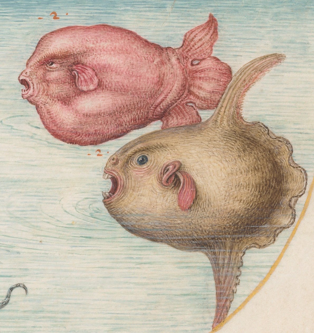 Renaissance-era book drawing of sunfish, Molidae sp.