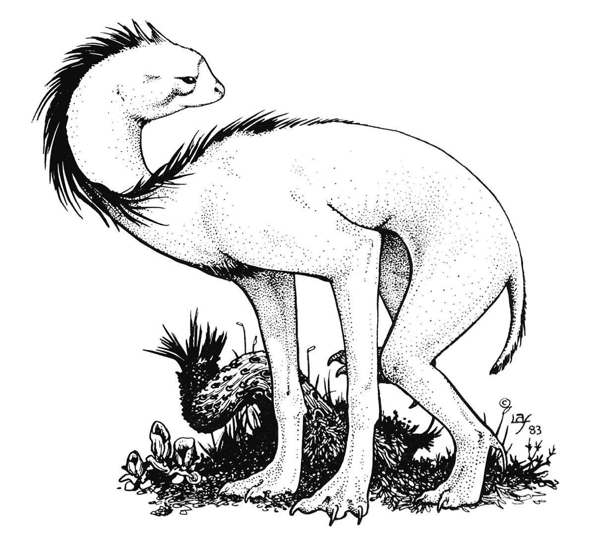 Creatures and races from the Ringworld Larry Niven's Ringworld series, based on the premise of a titanic artificial space habitat around a sun; had aspin-off role-playing game in the mid-1980s. The guide-books of this now-obscure game contained lavish illustrations of Ringworld races, alien creatures and habitats, executed a team of by talented artists including Ralph McQuarrie of the Star Wars fame. Here is a brief selection: