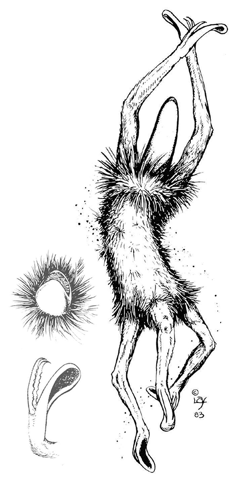 The free ypsigon is seen in the picture above. The transformation was a jarring and disturbing process. The y-cyprids' eyes devolved into masses of dark cells, which the ypsigons blindly carried about in their anterior regions.