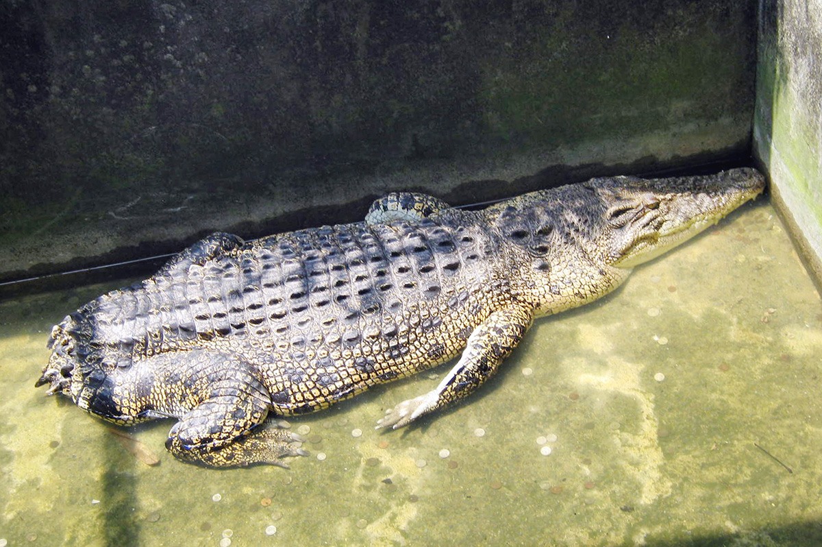 A certain mutation halts the development of the tail in crocodylians. Above, Crocodylus porosus; top, Alligator mississippiensis.