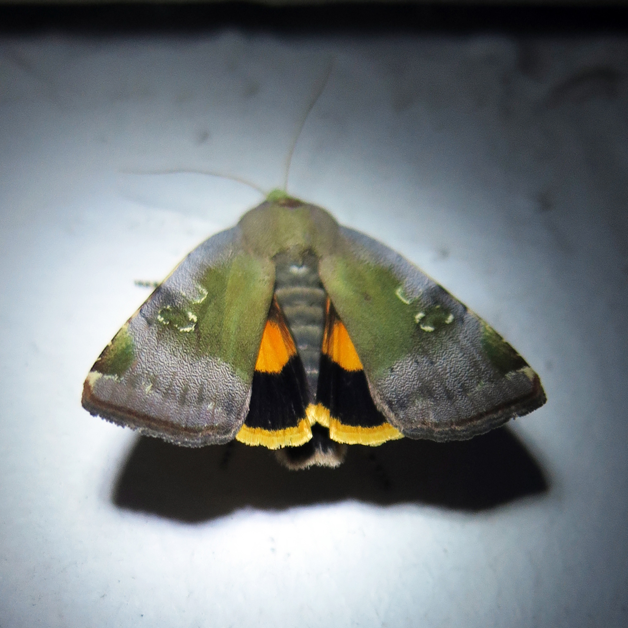 * Attracted to light in tangerine garden.