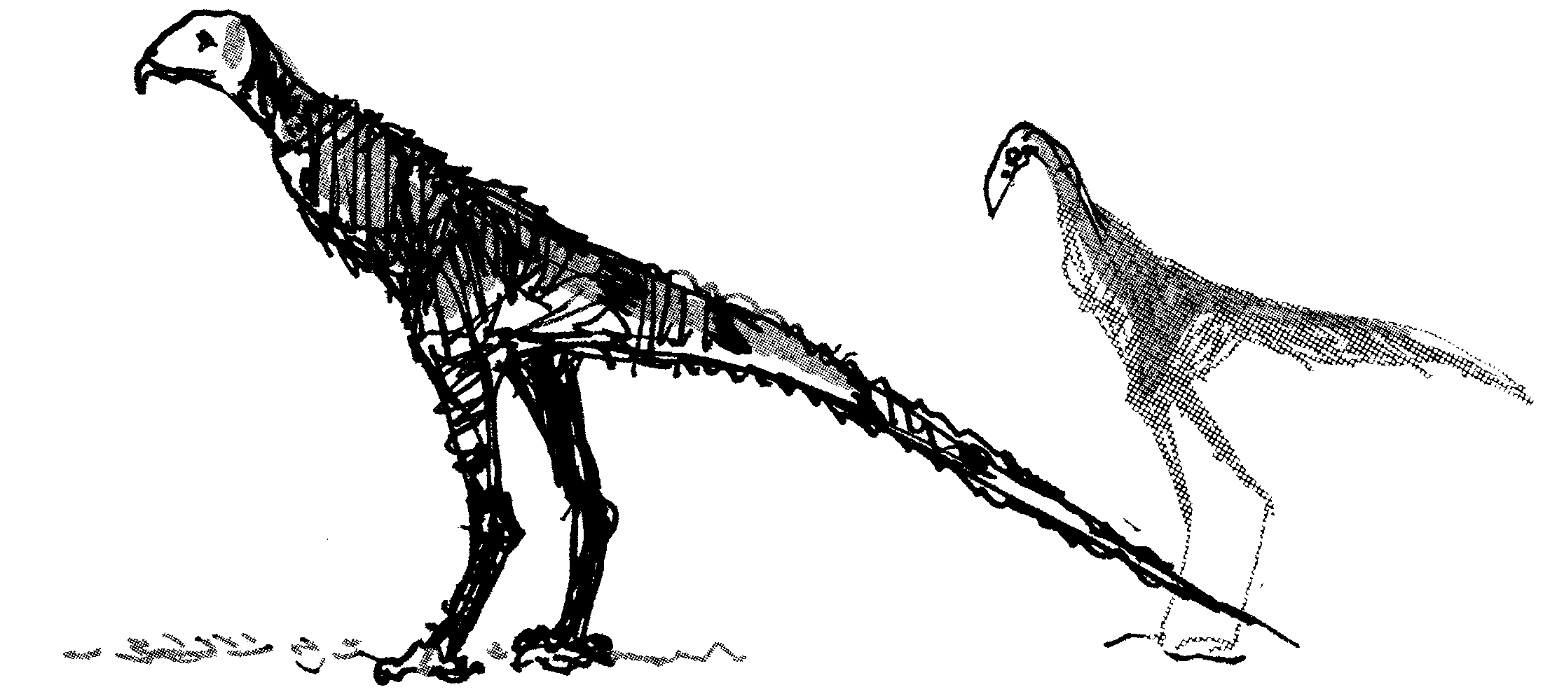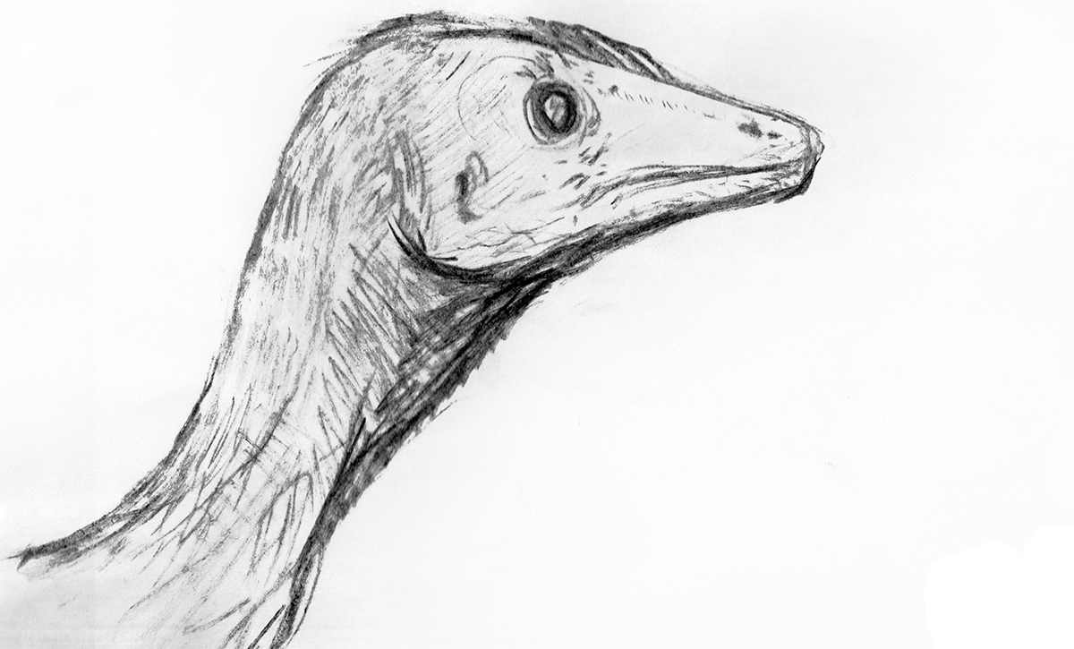 Pencil study of the early dinosaur Coelophysis.