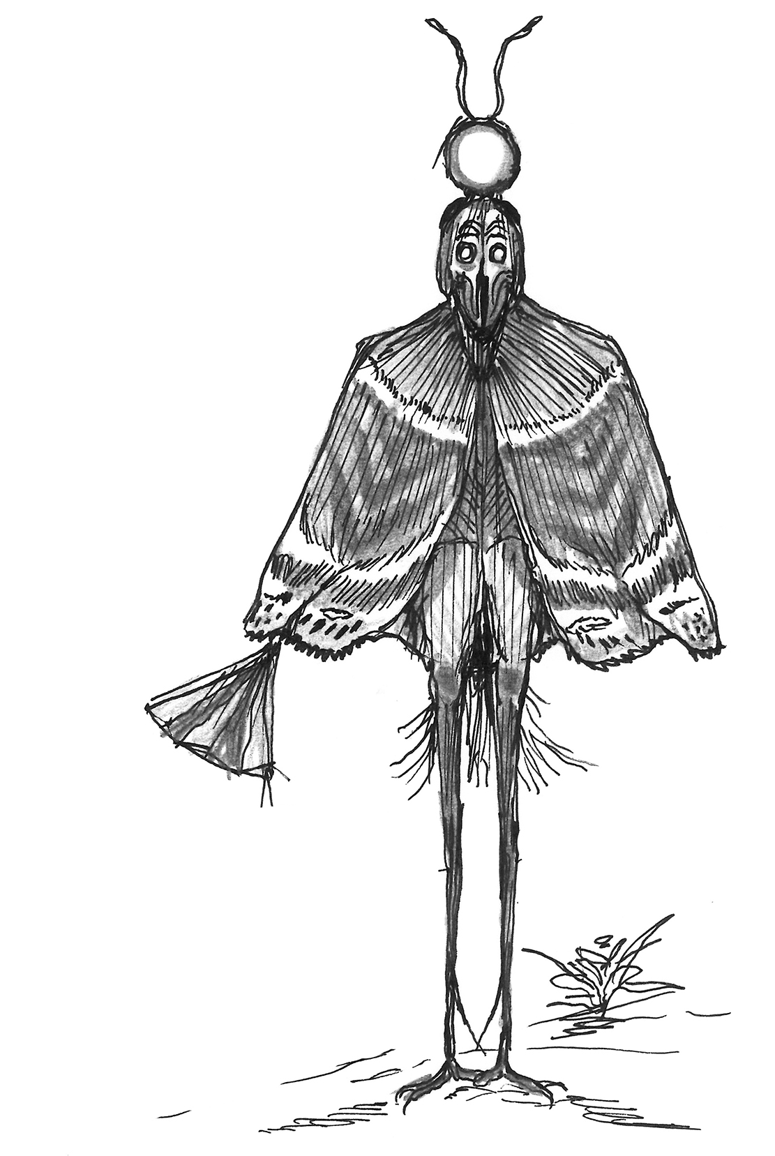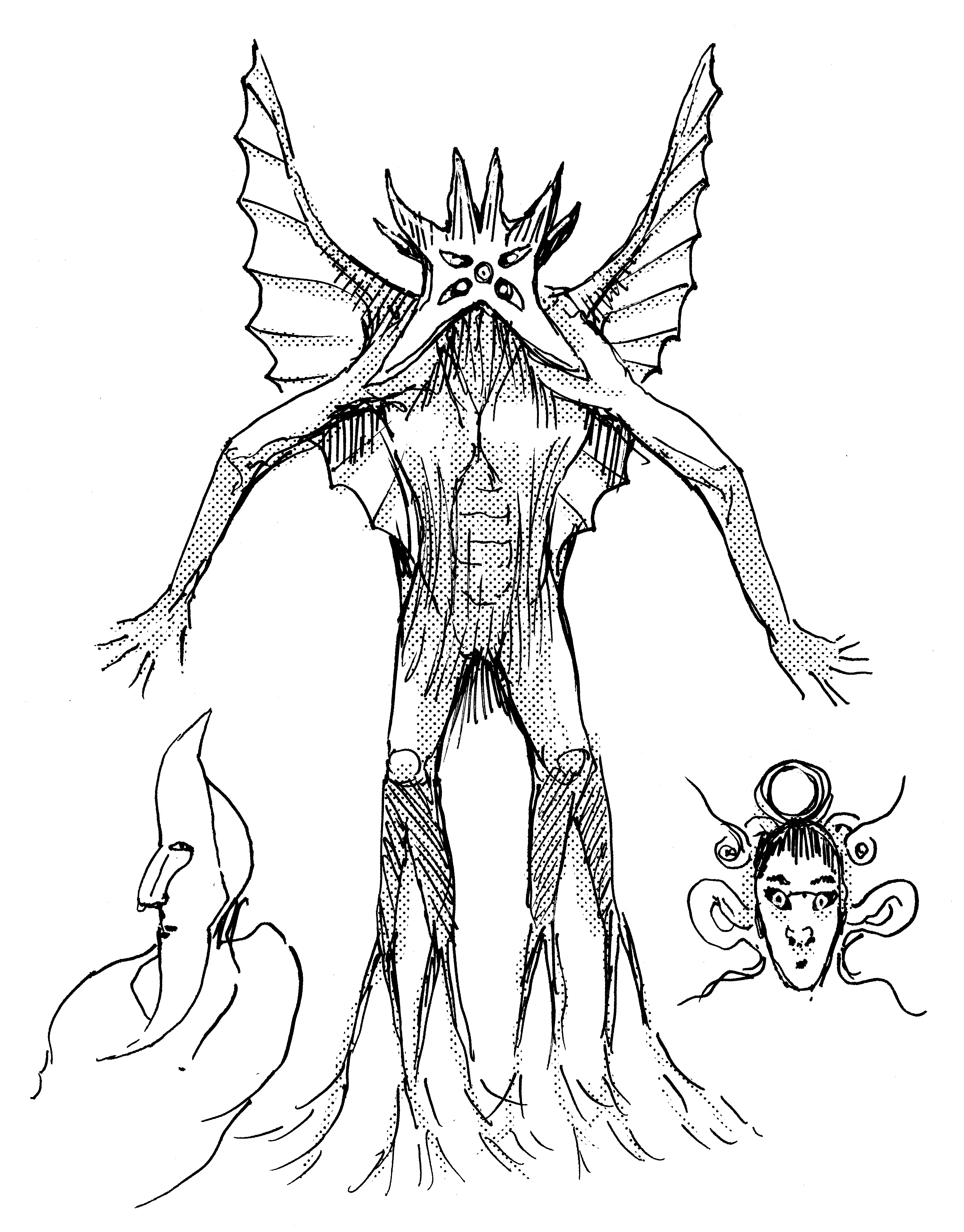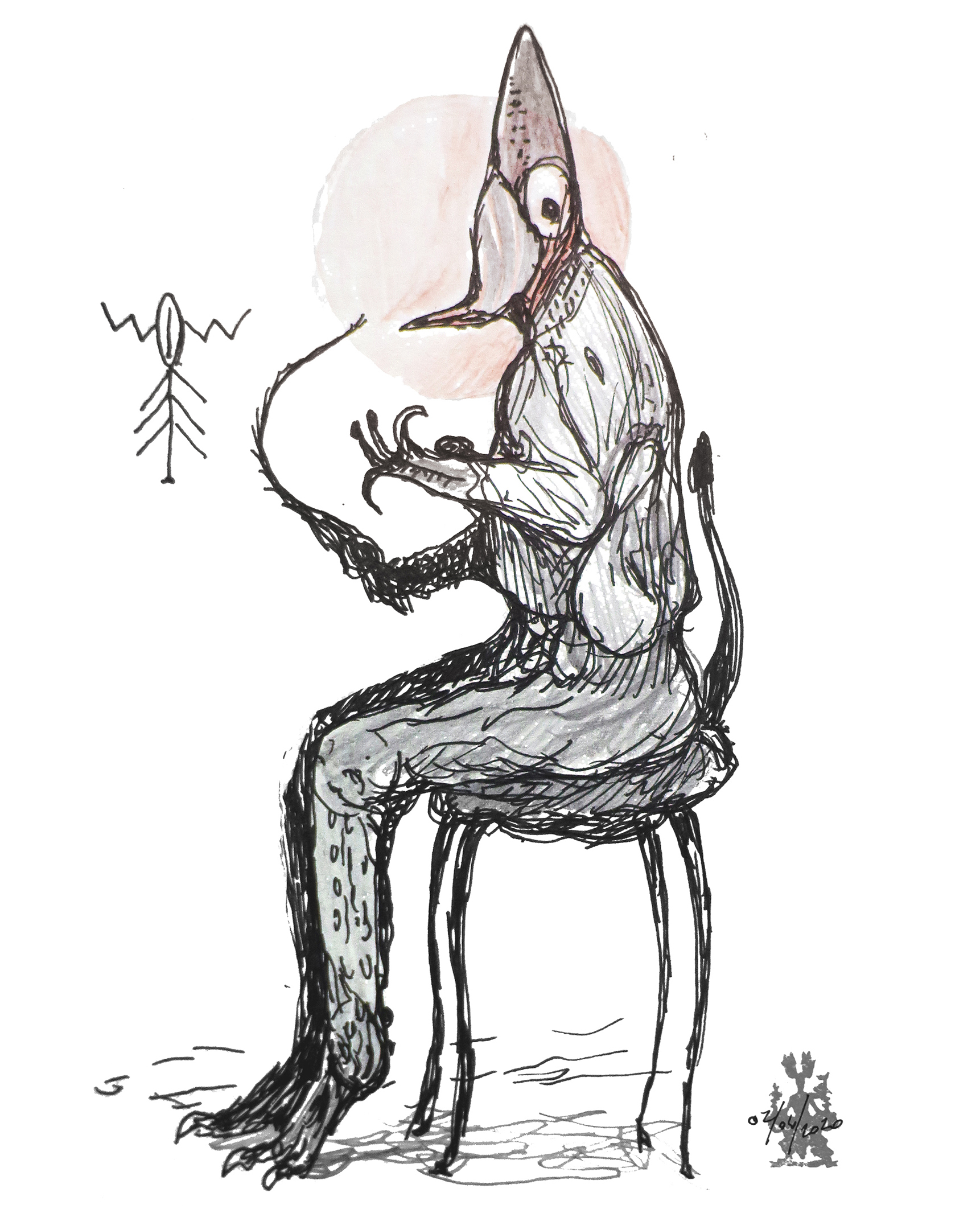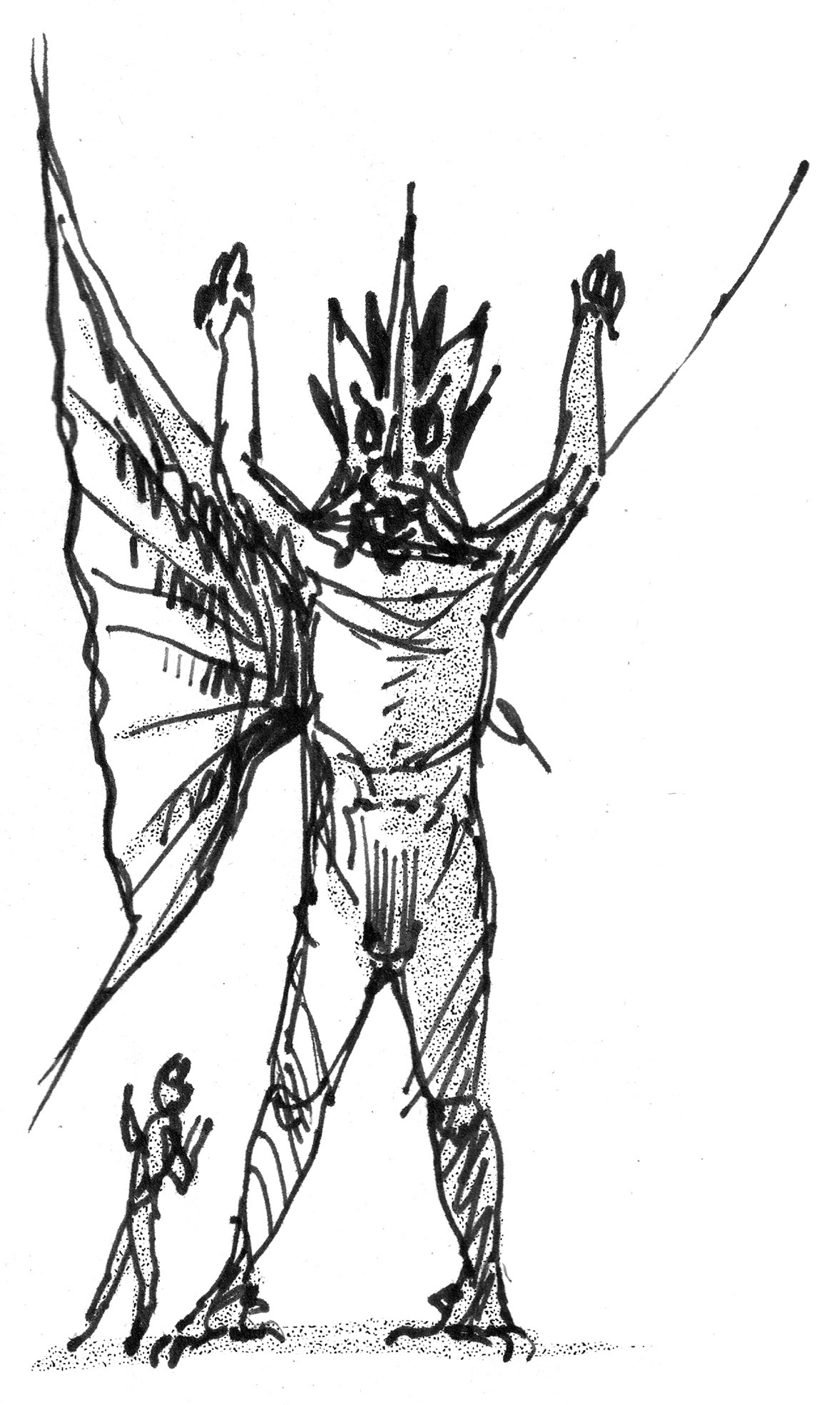 Sketch of a surreal demon-bird figure.