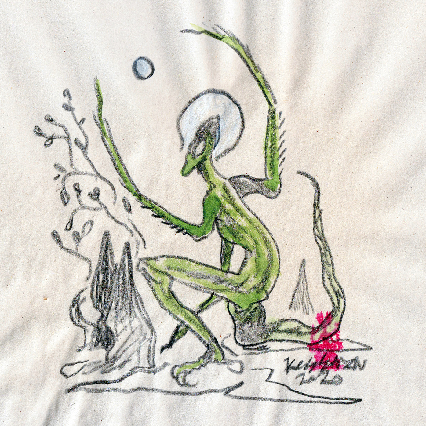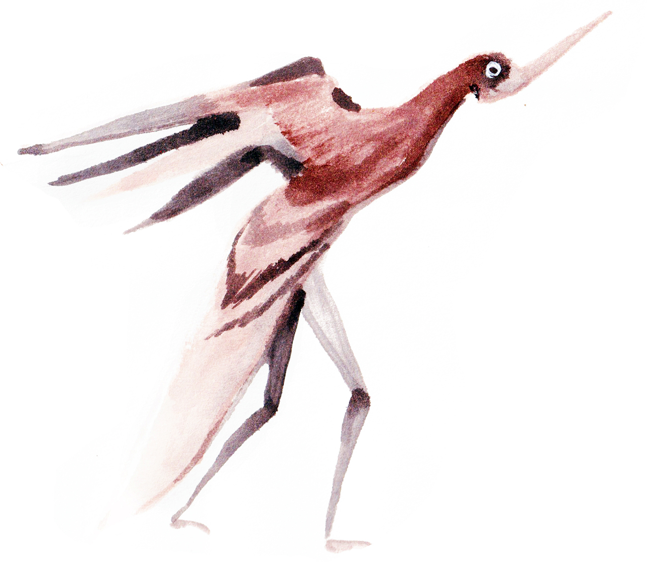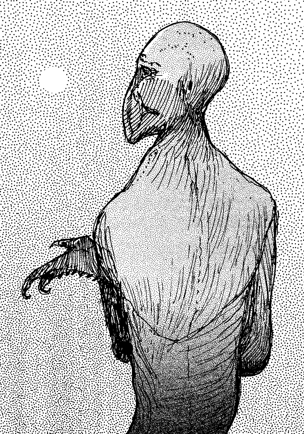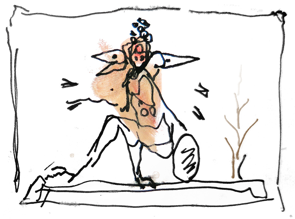 Sketch of a surreal demon-bird figure.
