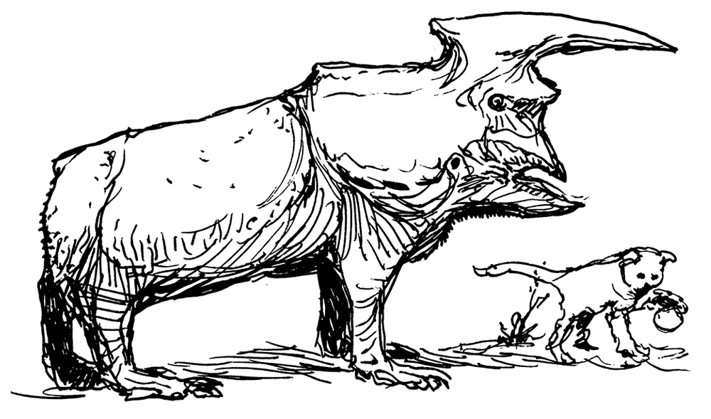 Unreferenced sketches of the dinosaur Pachycephalosaurus.