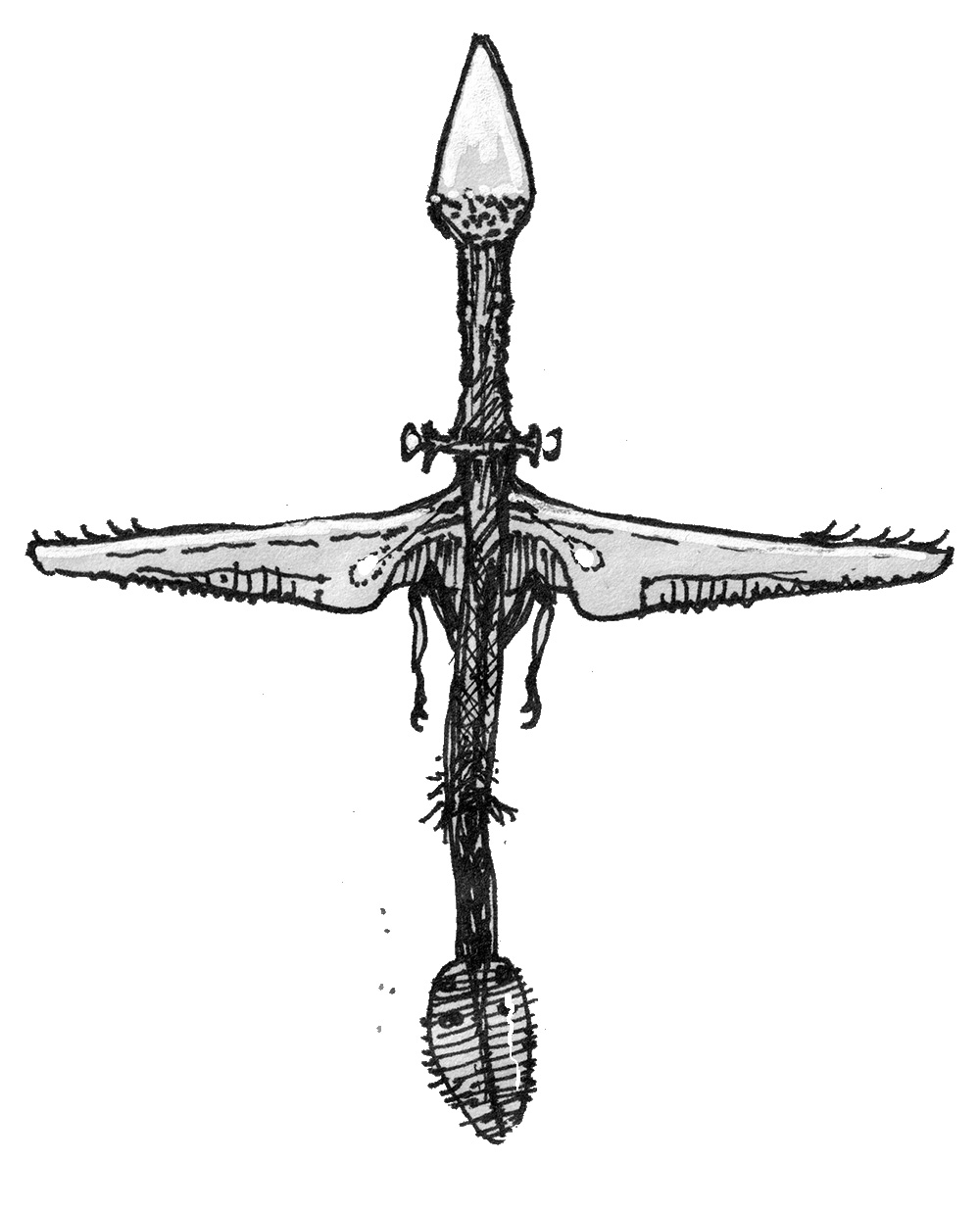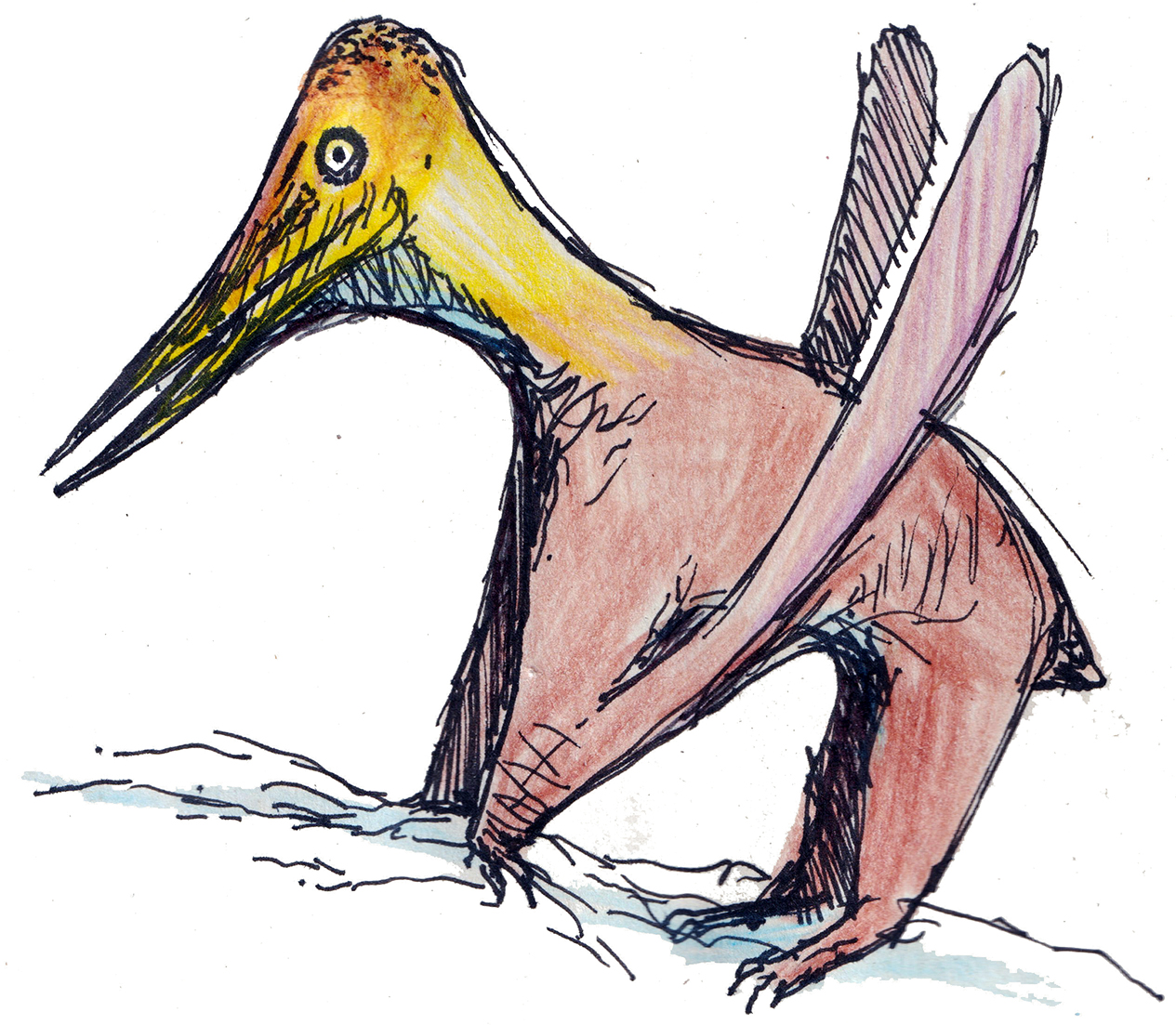 Sketch of a pterosaur that has adapted to a penguin-like lifestyle, an exercise in speculative evolution.