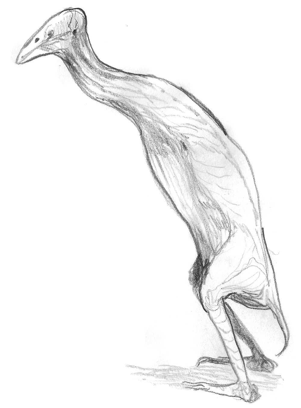 Sketch of a dinosaur-like creature with an aquiline beak. The result of an exercise in speculative evolution.