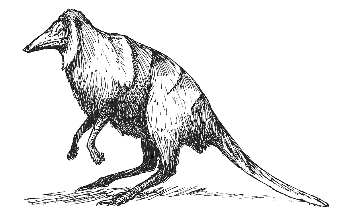 Ink sketches of dog-like tripod animals from a unique line of terrestrial vertebrates - results of an exercise in speculative evolution.