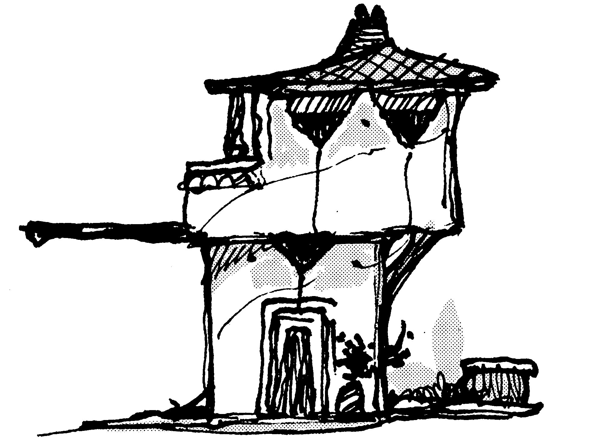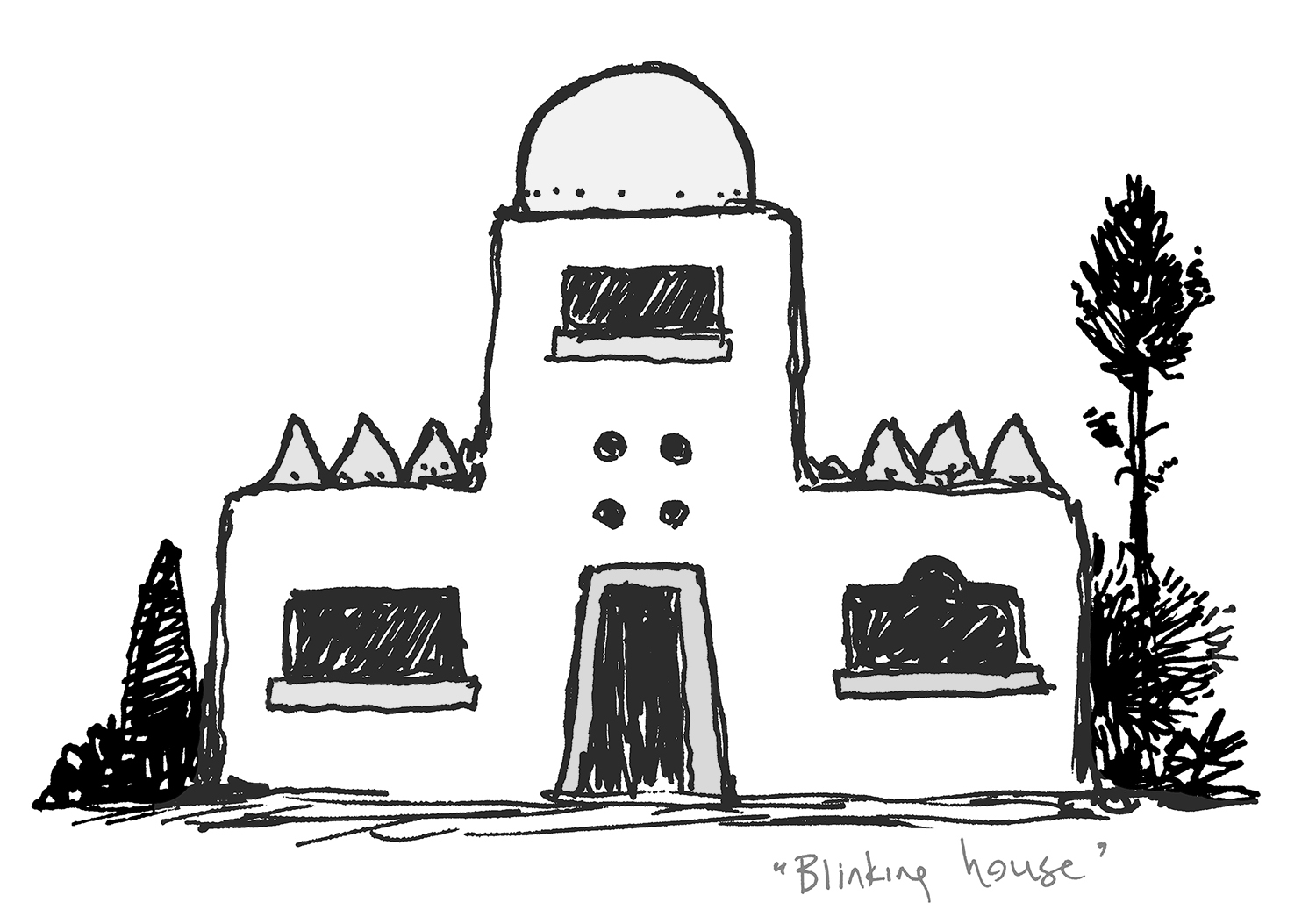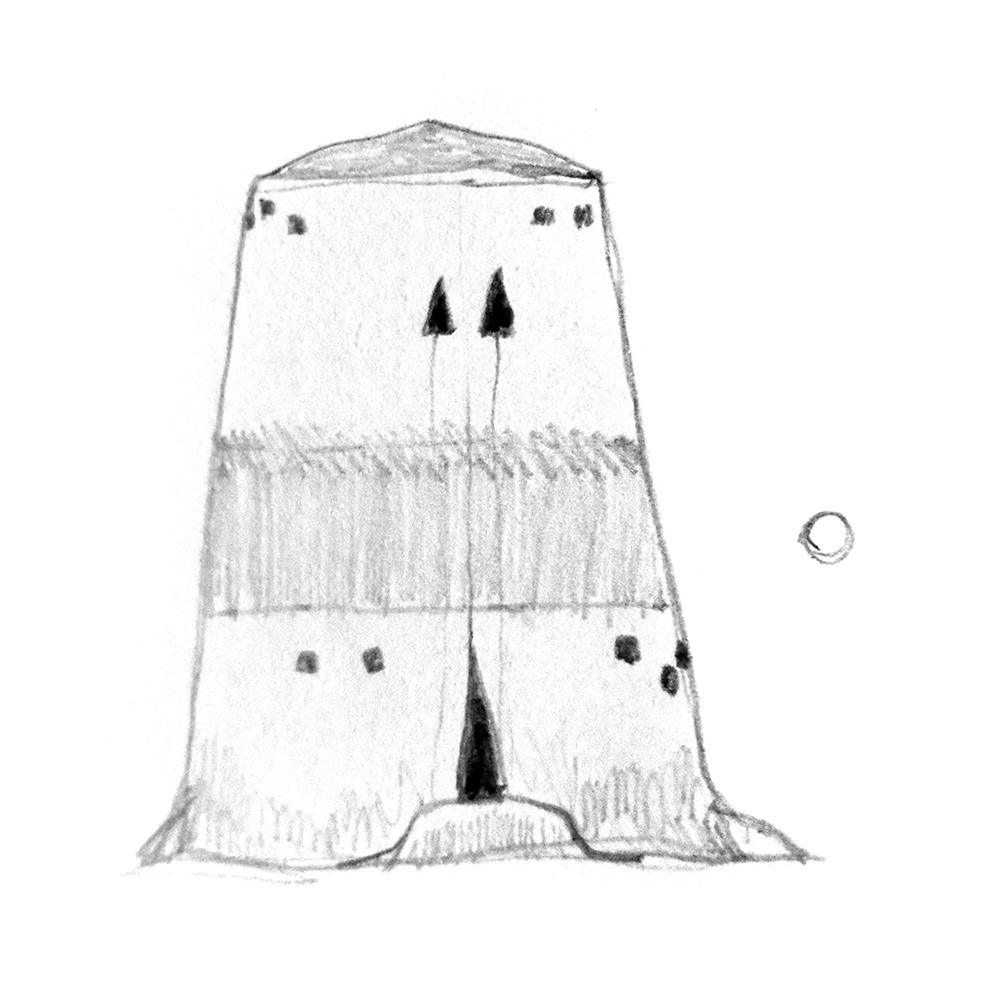 Architectural fantasy, a "blinking house" built out of stone and mud.