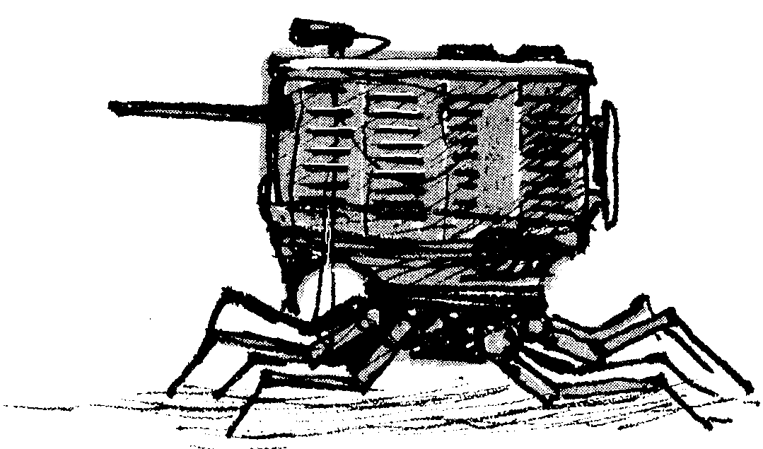 Sketches of a variety of wheeled-and-legged, insect-like armoured fighting vehicles.