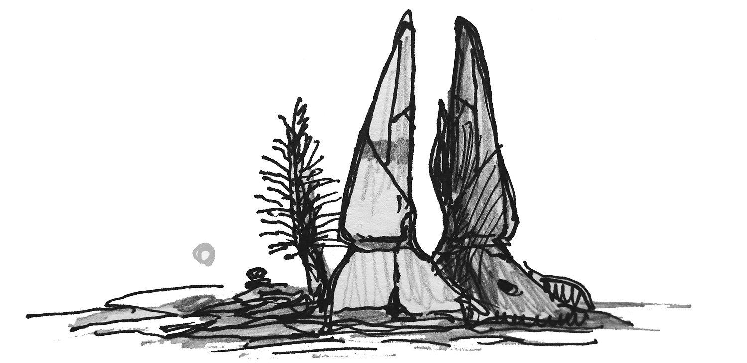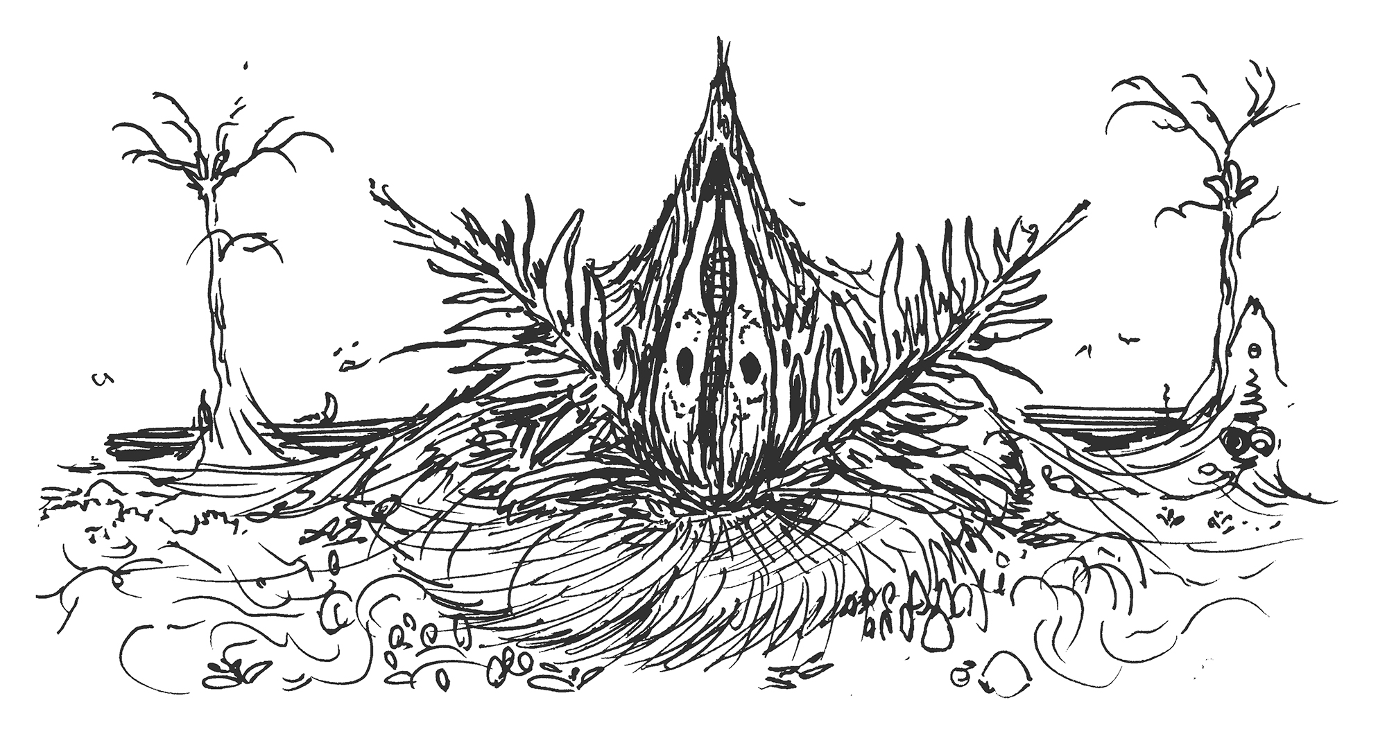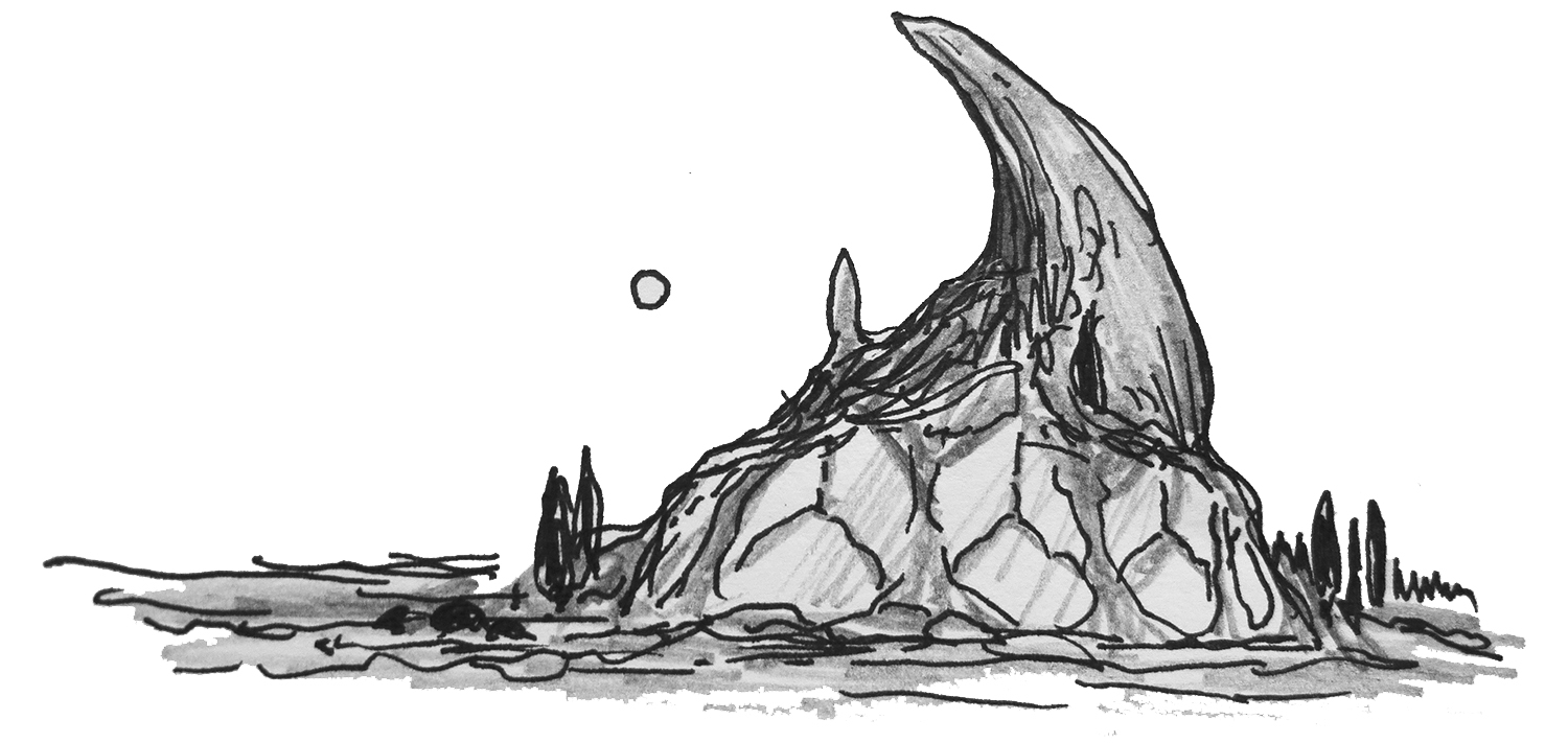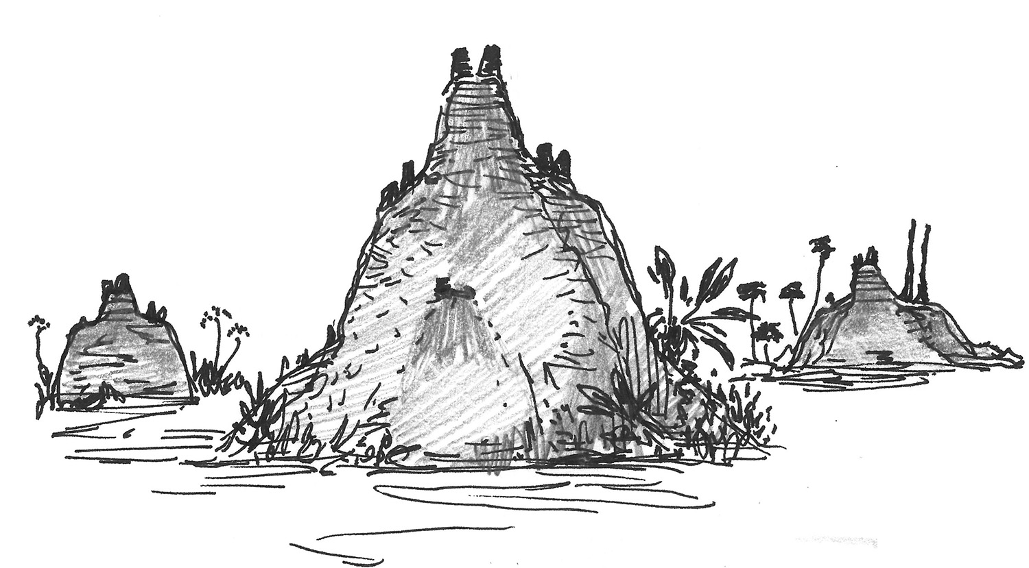 Sketch of mound-like trees on an alien planet.