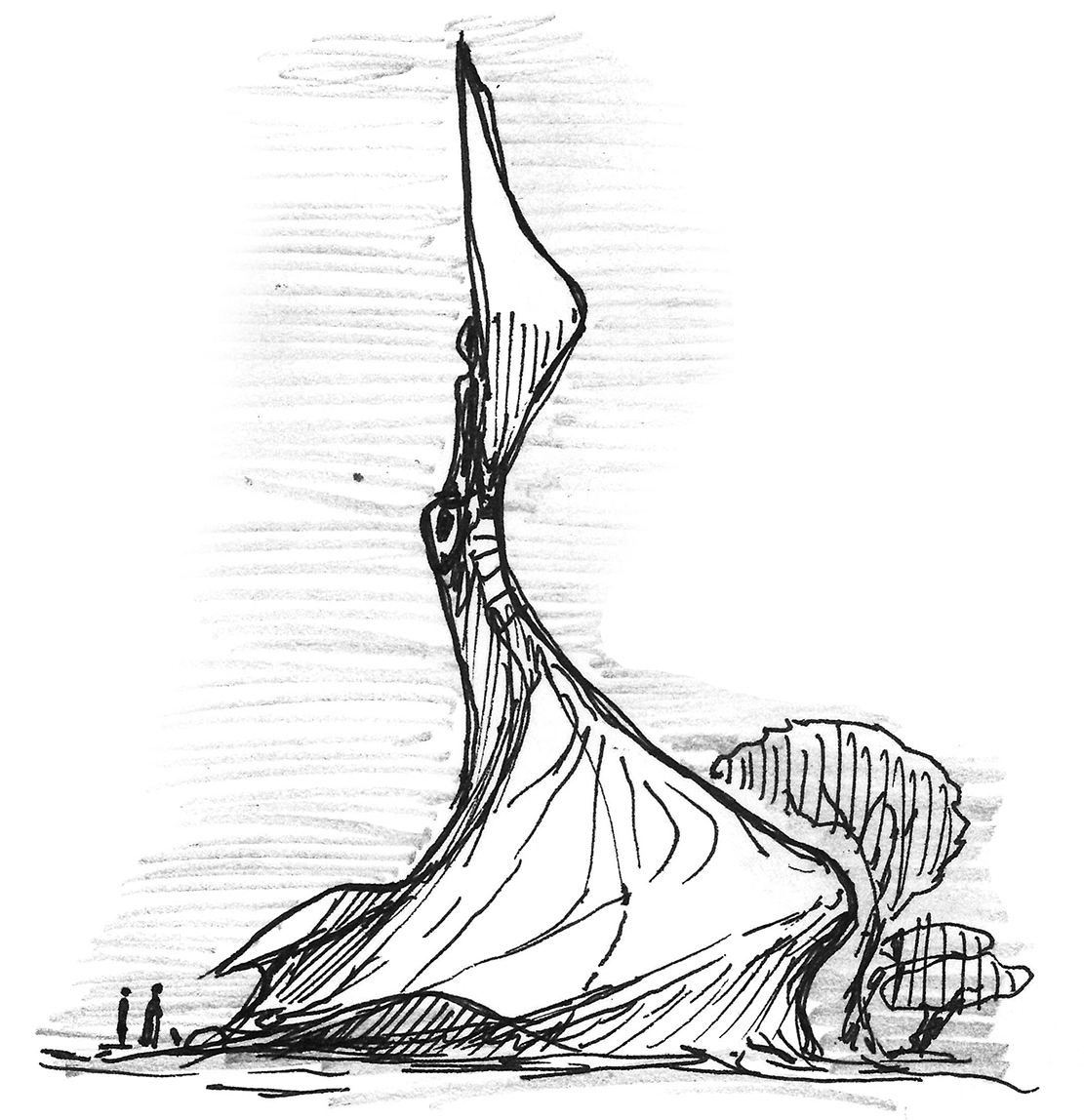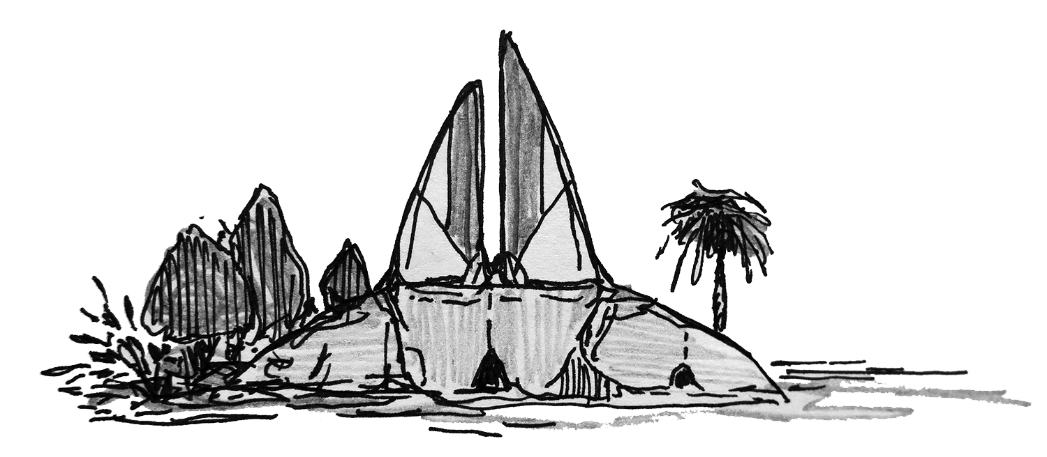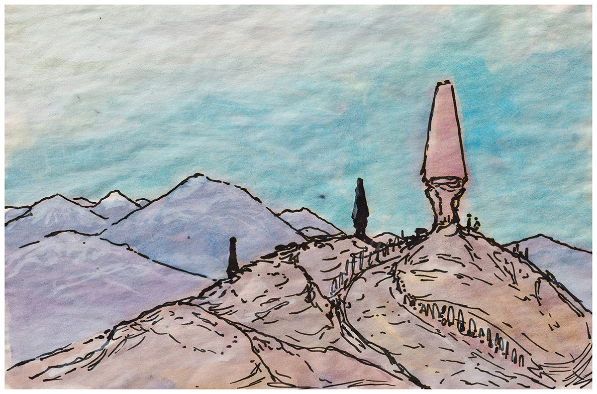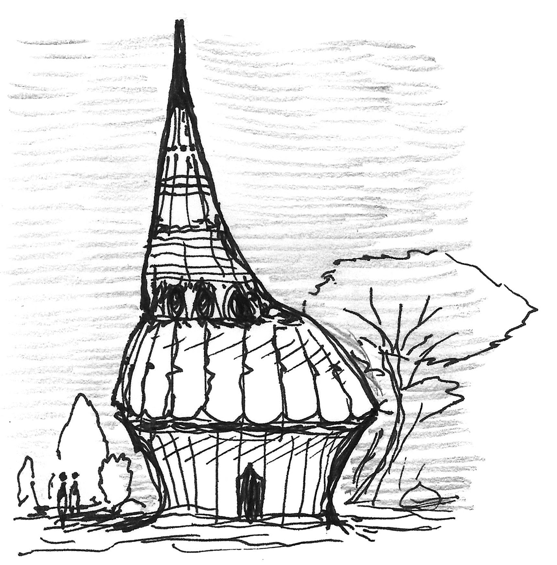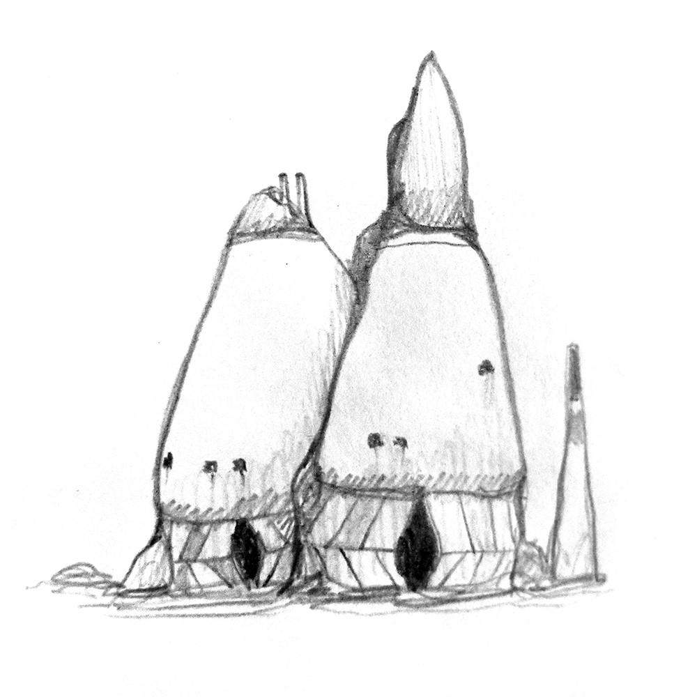 Sketch of mound-like trees on an alien planet.