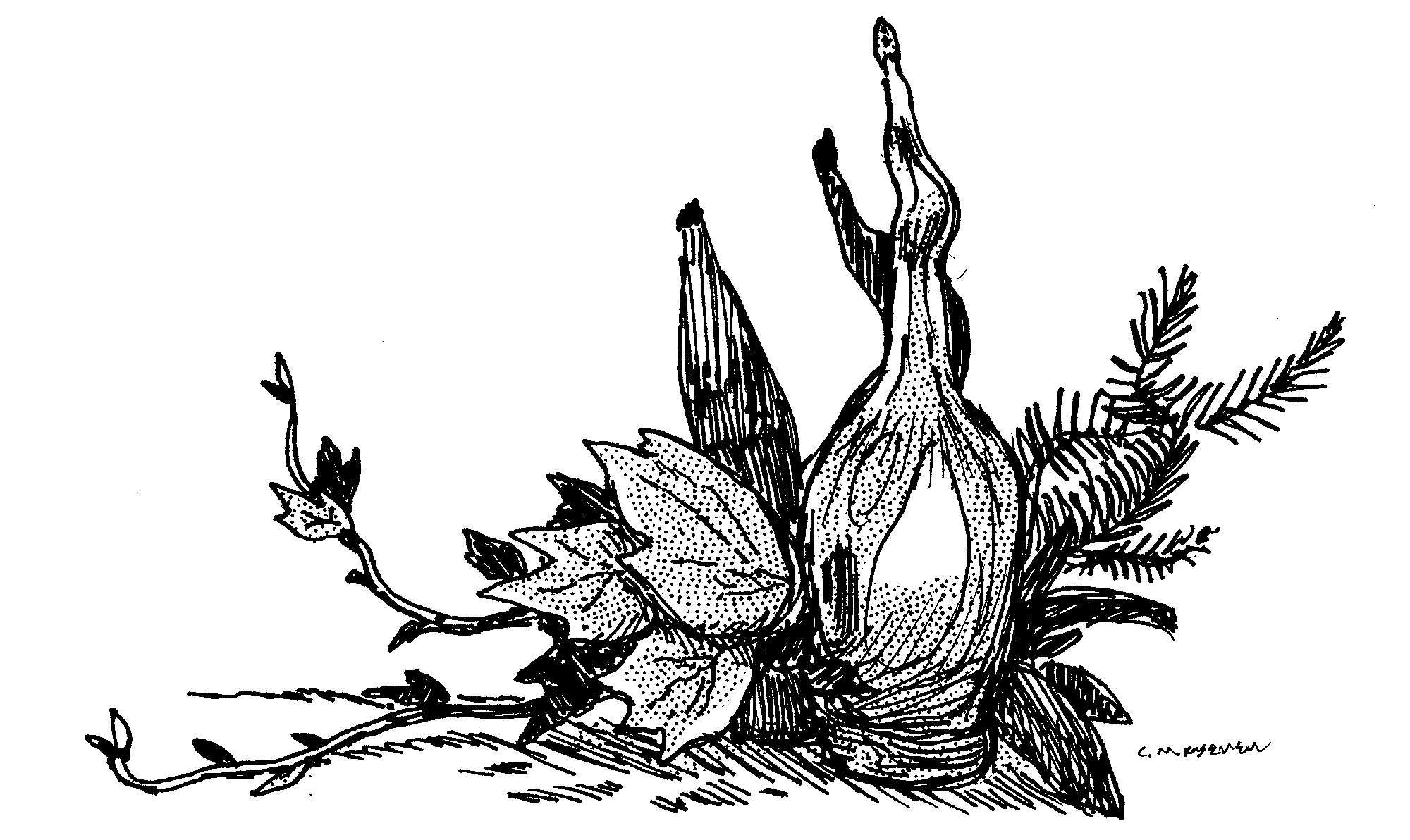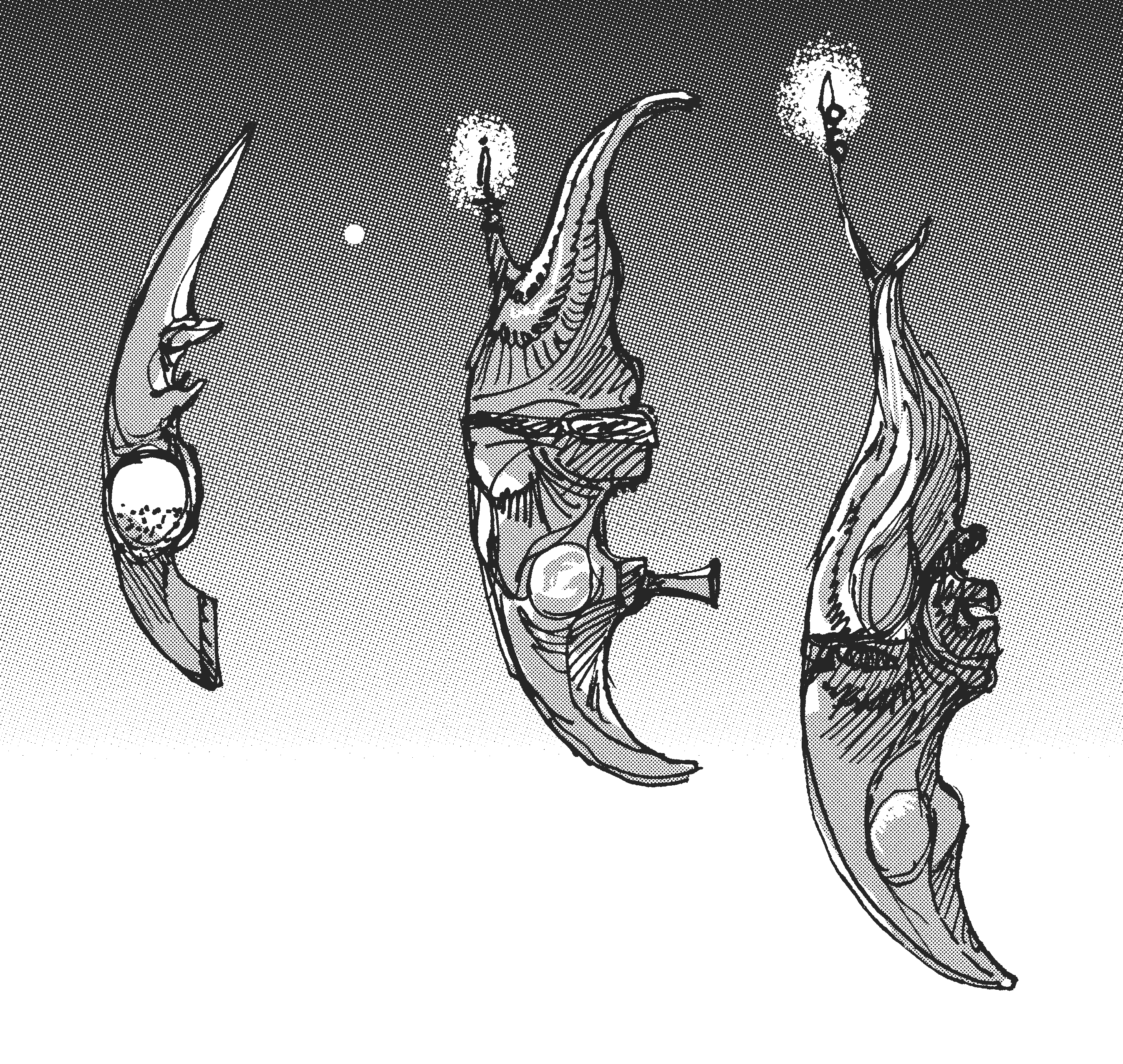 Ink sketches of fantastic, swan-like forms.