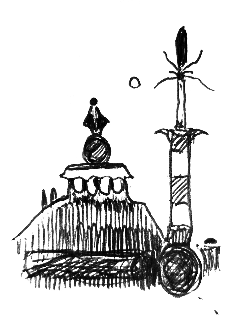 Frivolous sketch of a haunted statue.
