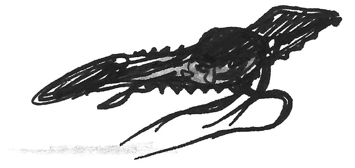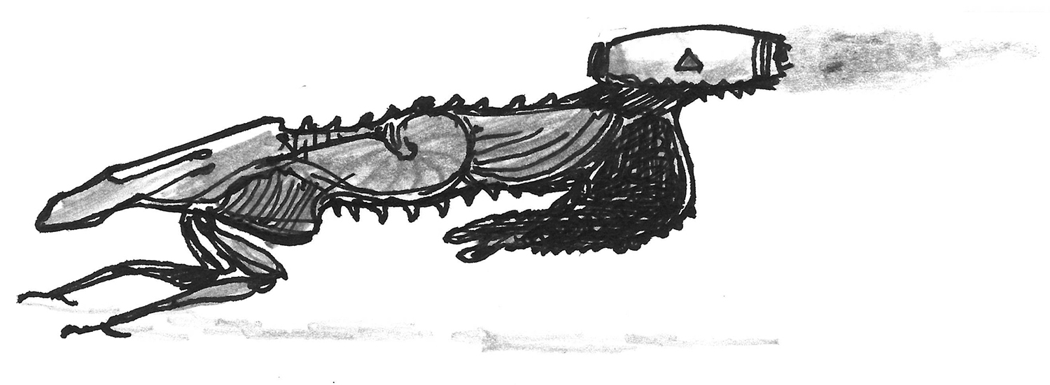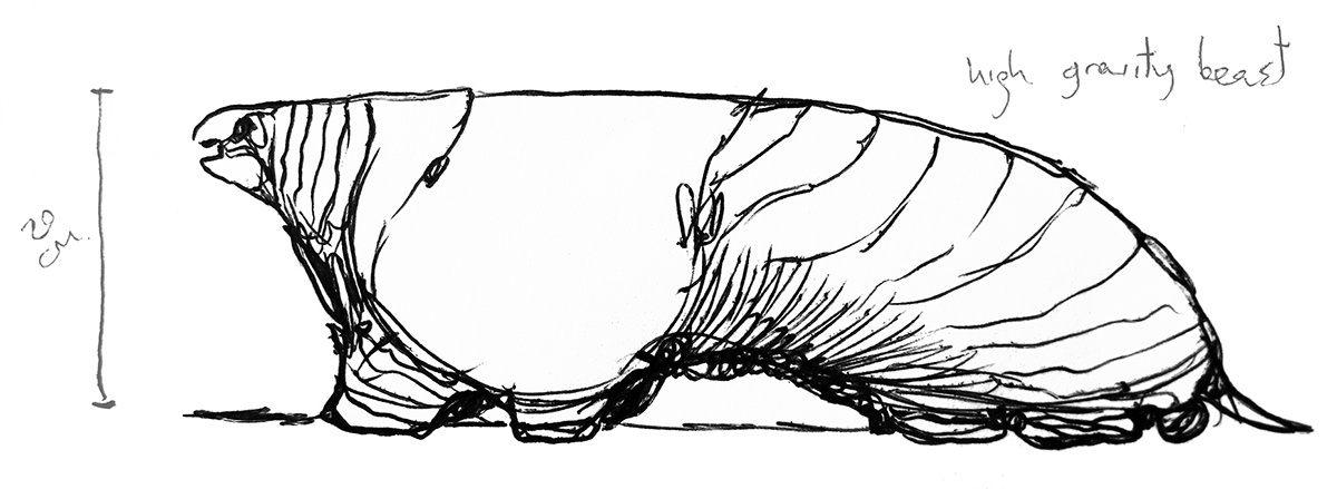 Sketch of the mightiest beast on an alien world with high gravity - a creature about the size of a shoe. The result of an exercise in speculative evolution.