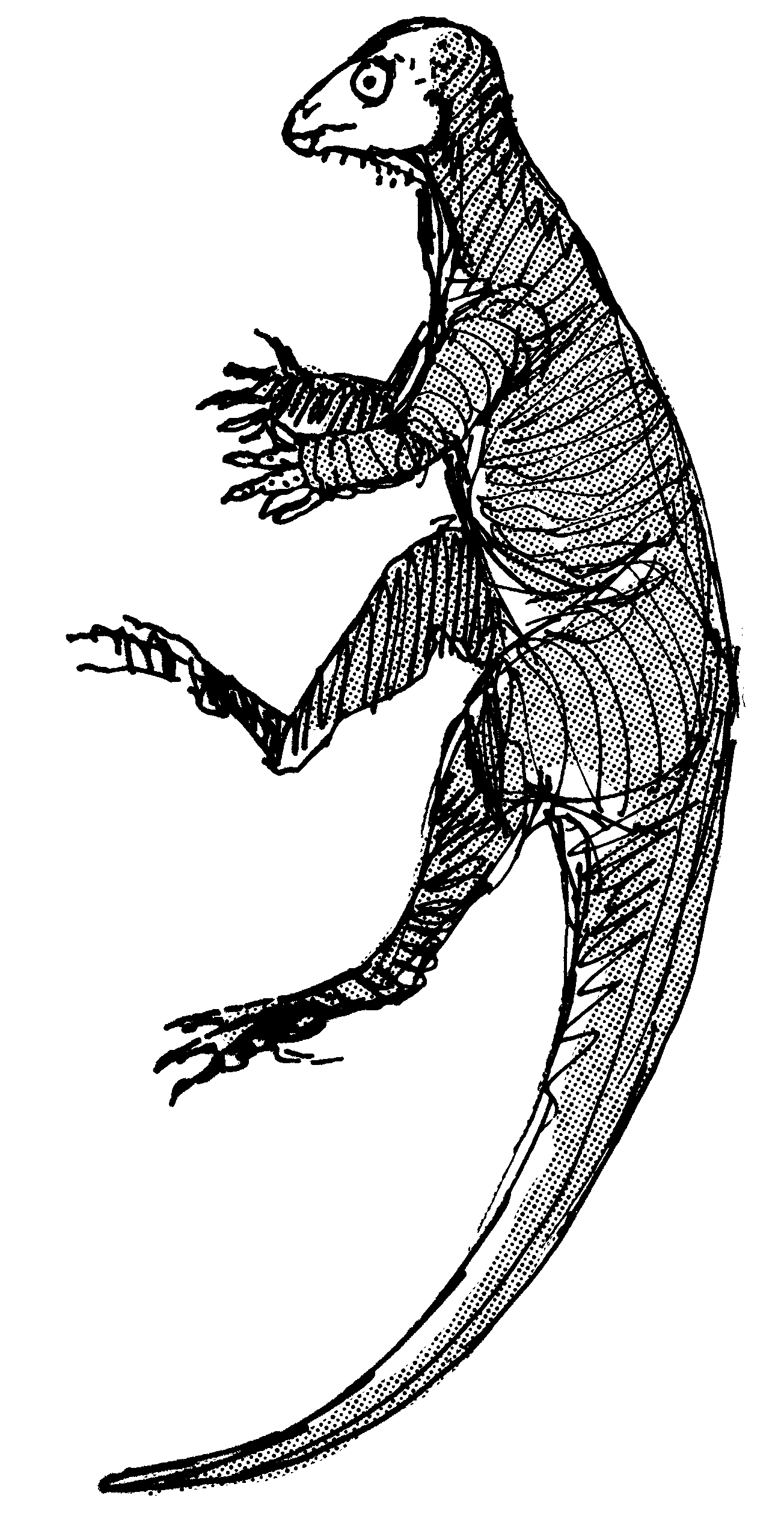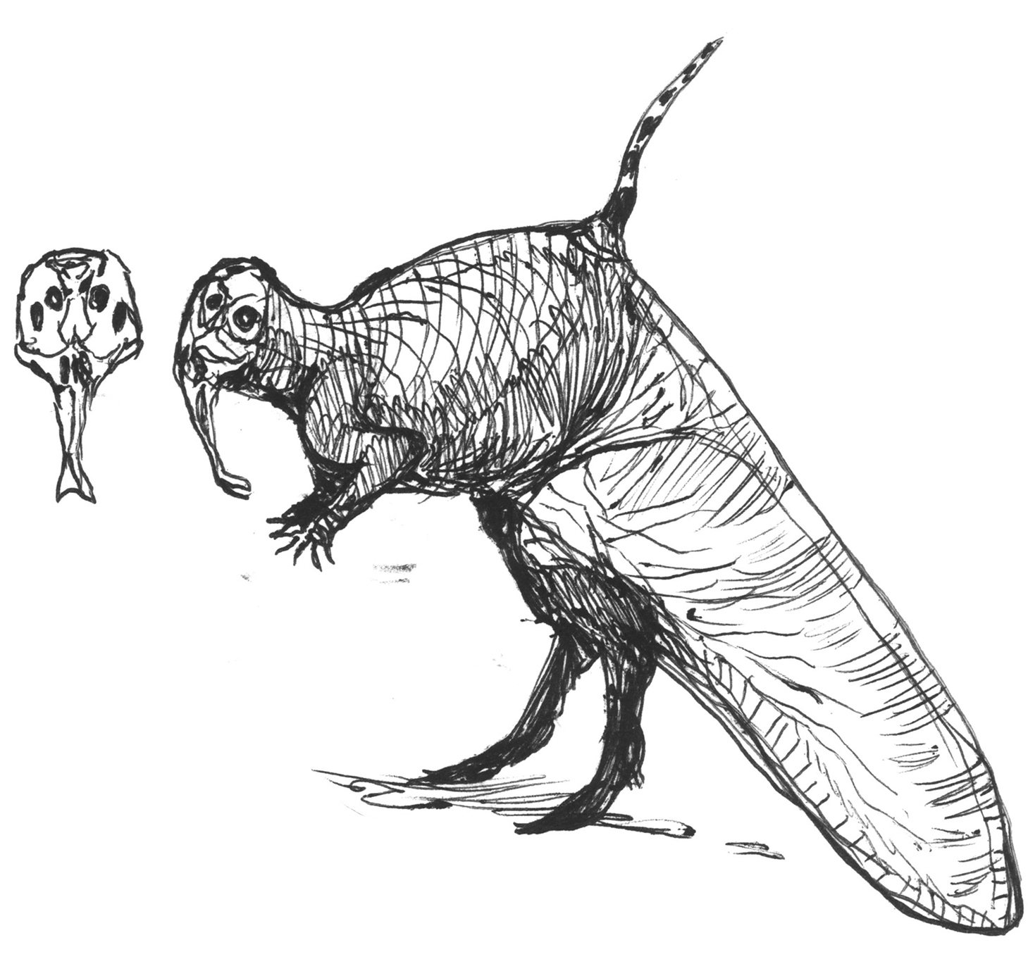Sketch of a pterosaur ancestor. Not a real animal, but the result of an exercise in speculative evolution.