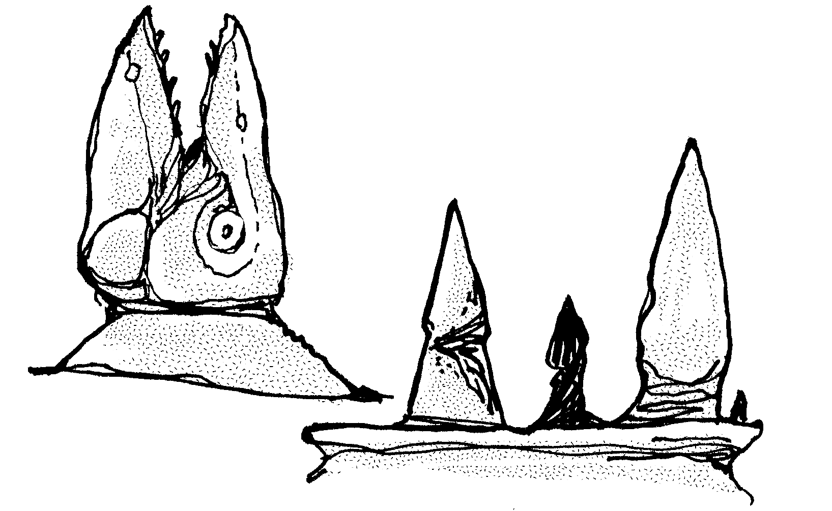 Sketches of two fantastic tombstones.