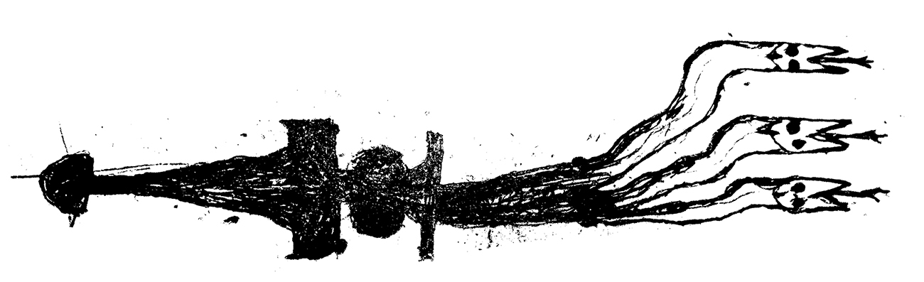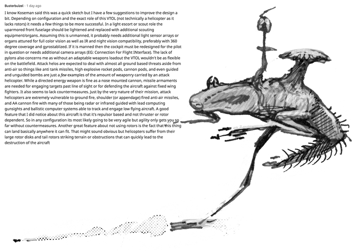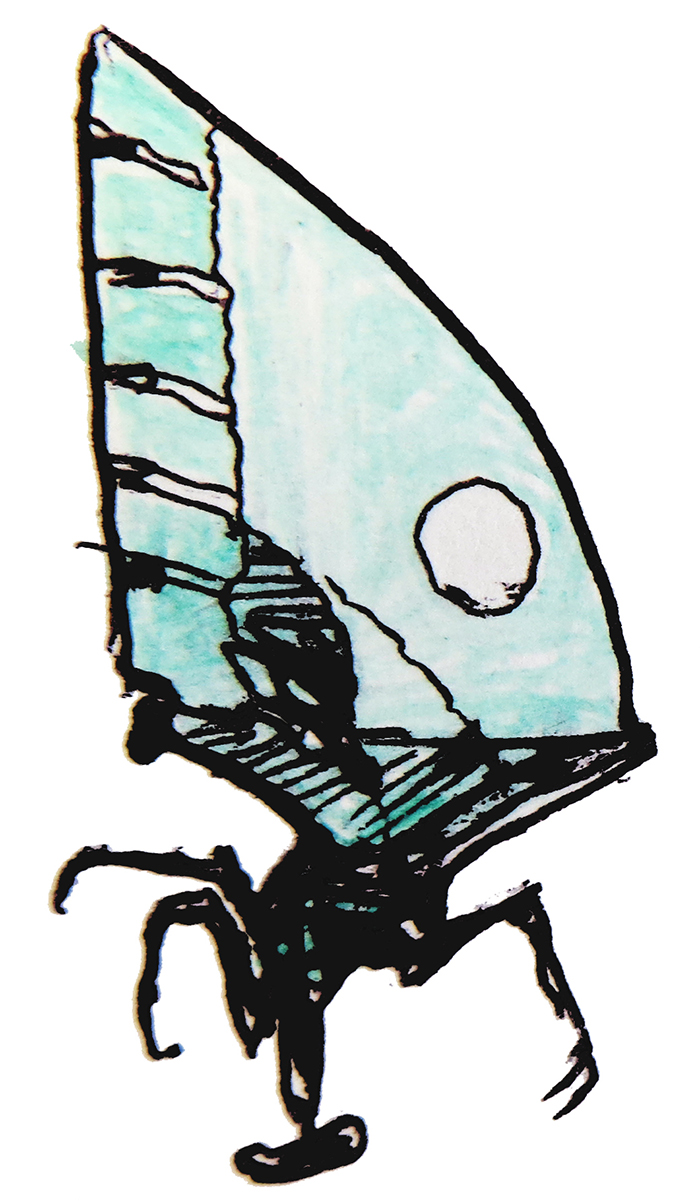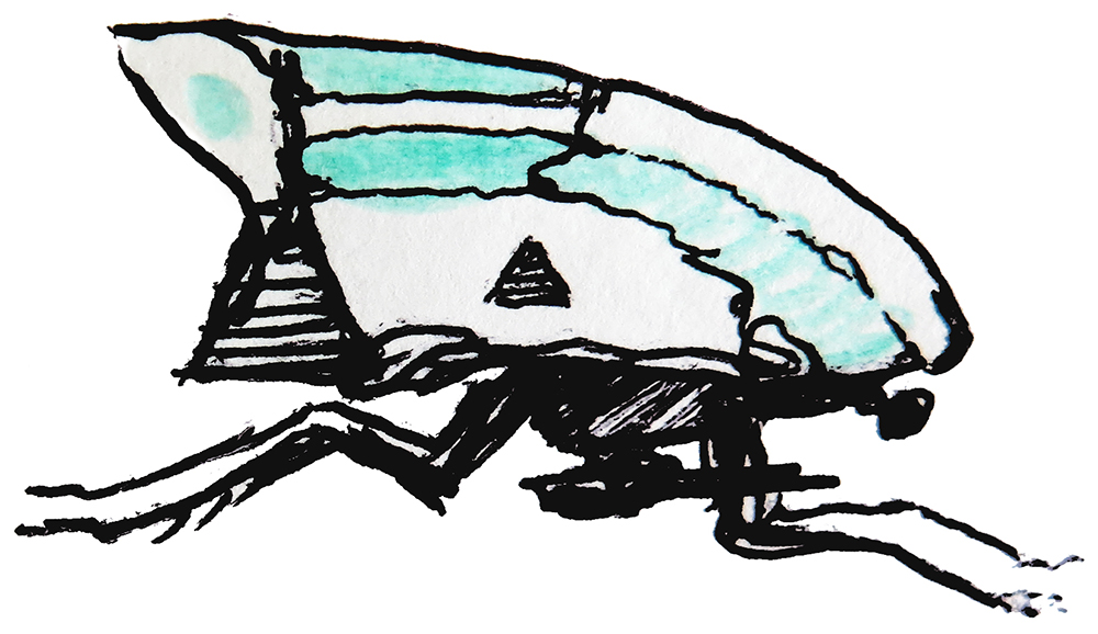 Sketch of a fantastic spaceship that resembles an insect.