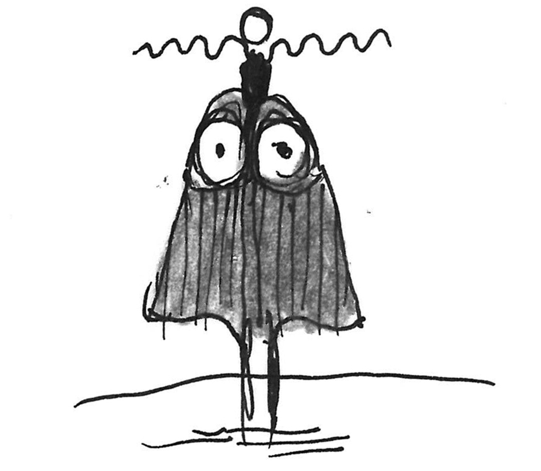 Frivolous sketch of a penguin-like figure.