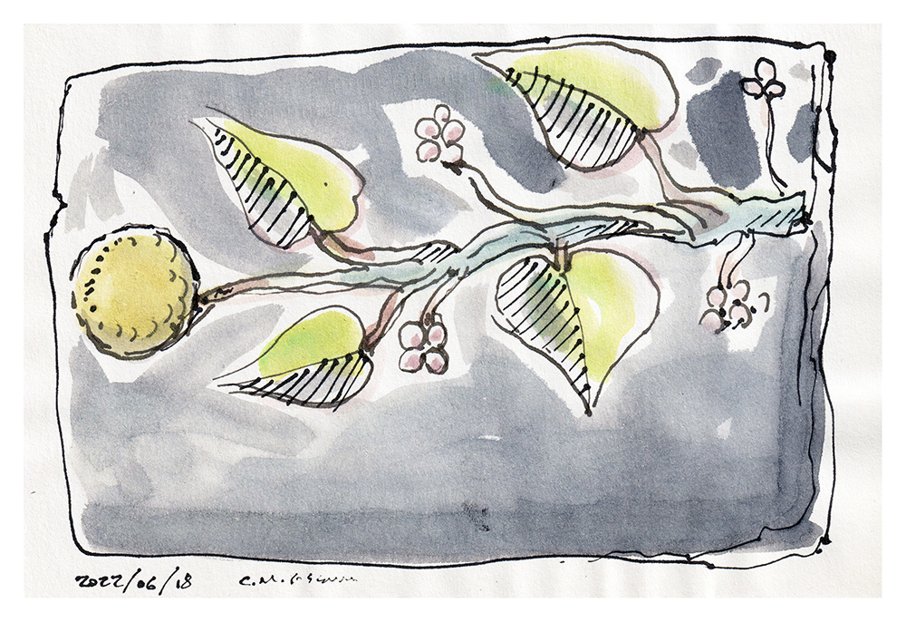 Sketch of a gnarly maple tree stump, drawn from real life.