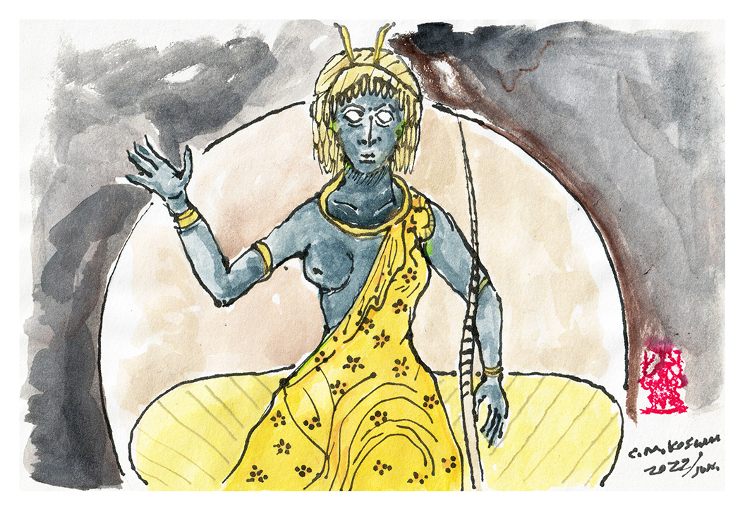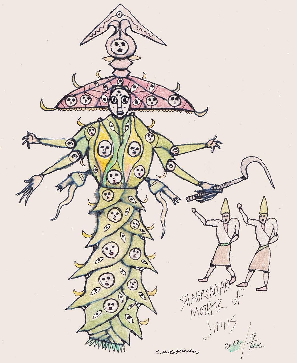 Sketch of Shahrennar, mother of all jinns. Fantastic doodle inspired by the Davetname, a historic Ottoman-era treatise on supernatural beings.
