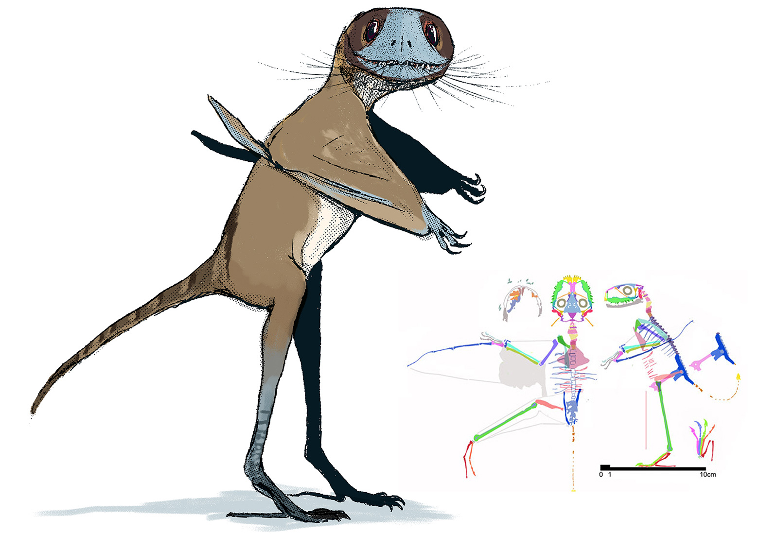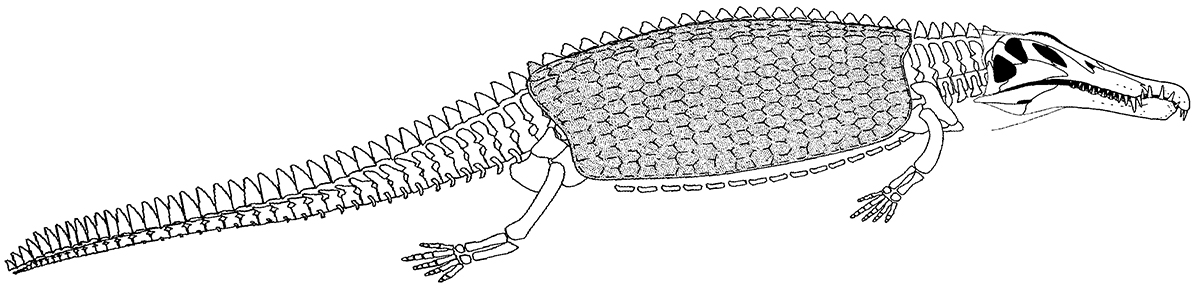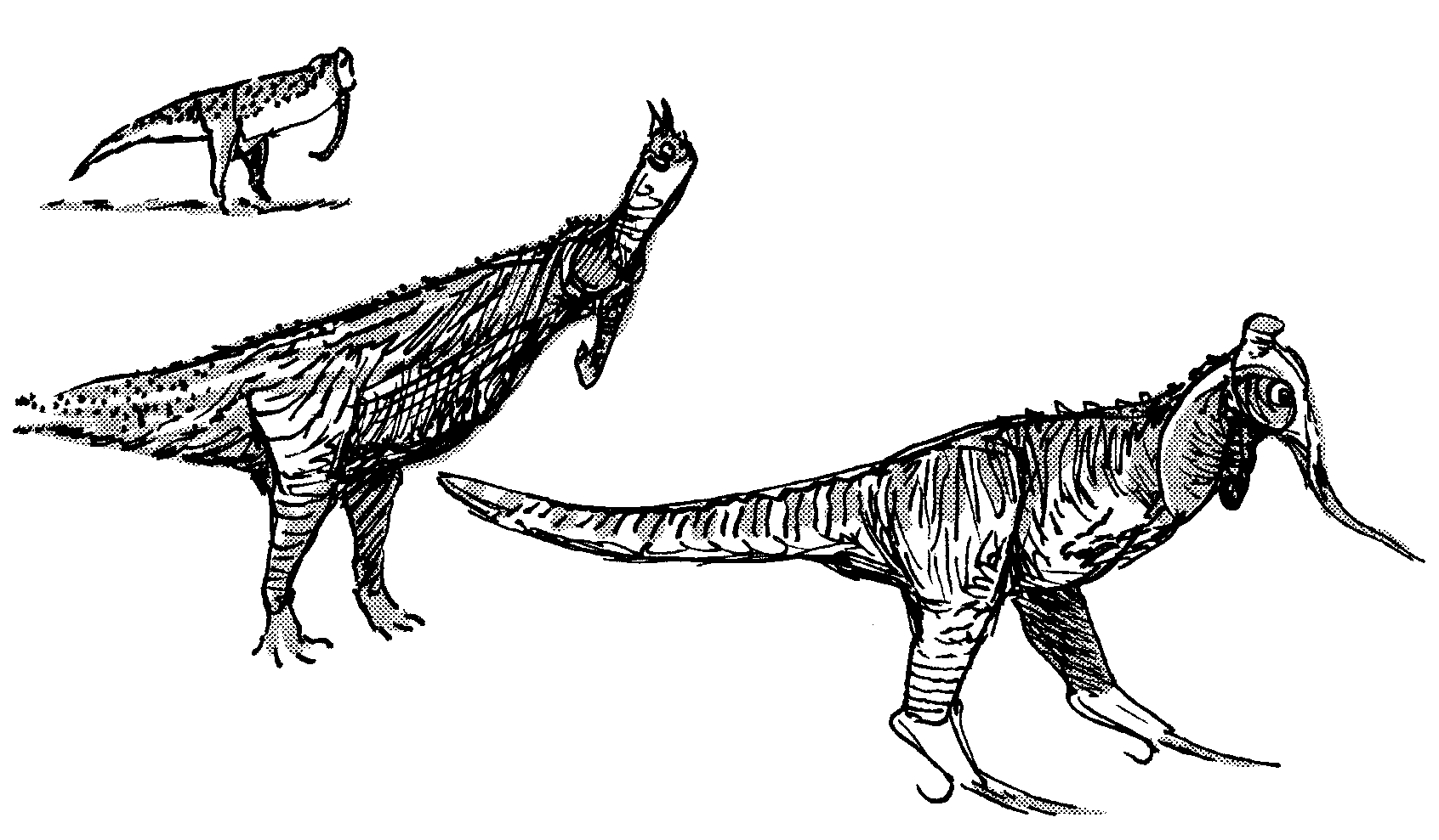 Sketch of an "ancestral dinosaur"; a hypothetical form which may have given rise to all main groups of dinosaurs.