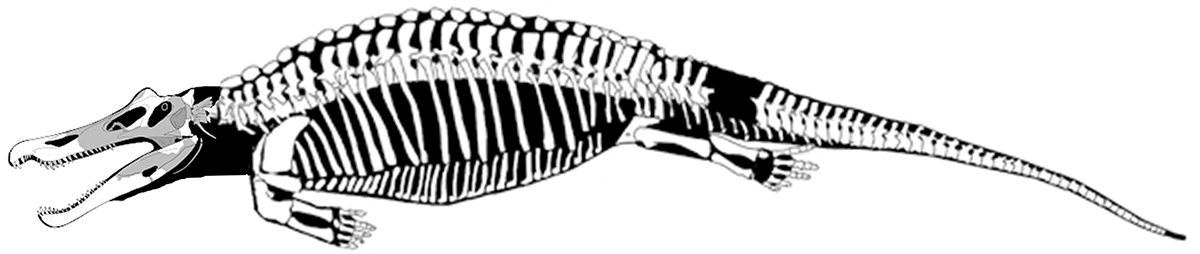 b.) Arachnoselachis sp., from a genus of superficially-lizard-like land animals that evolved secondary adaptations for a swimming lifestyle.