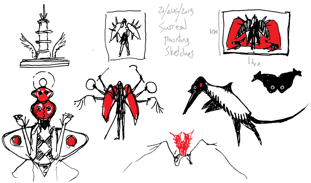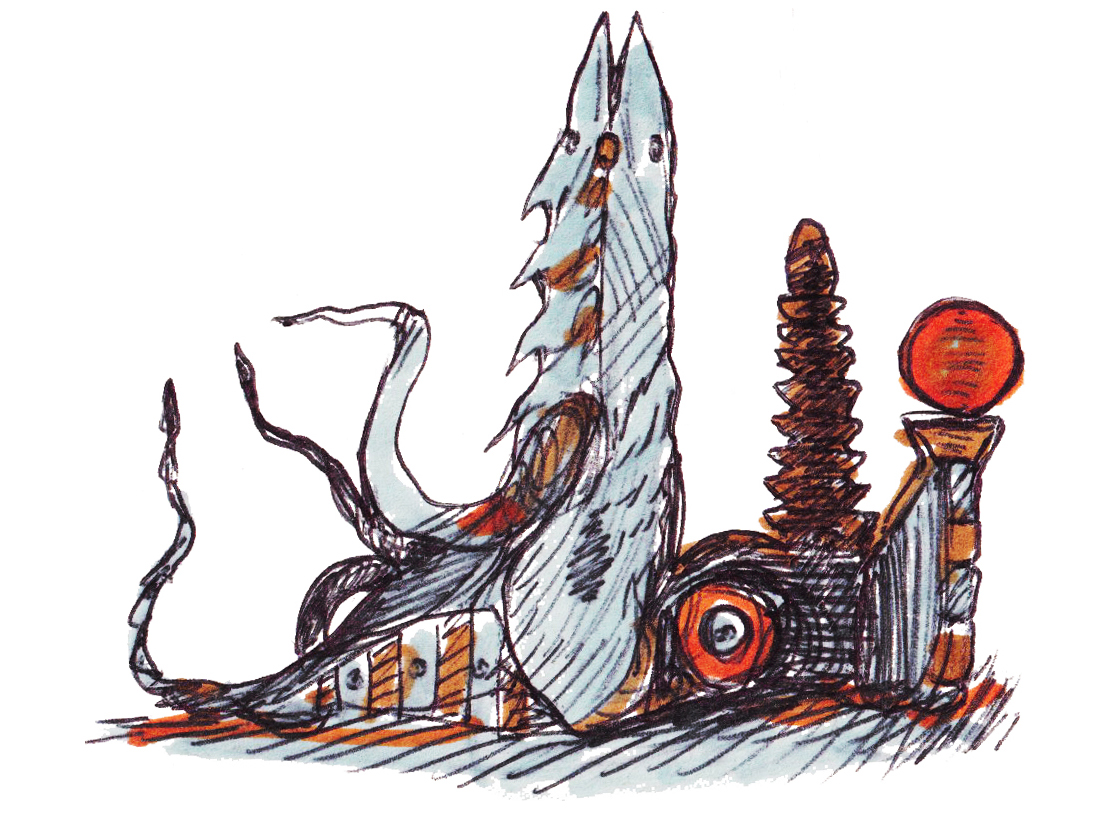 Sketches of surreal objects.