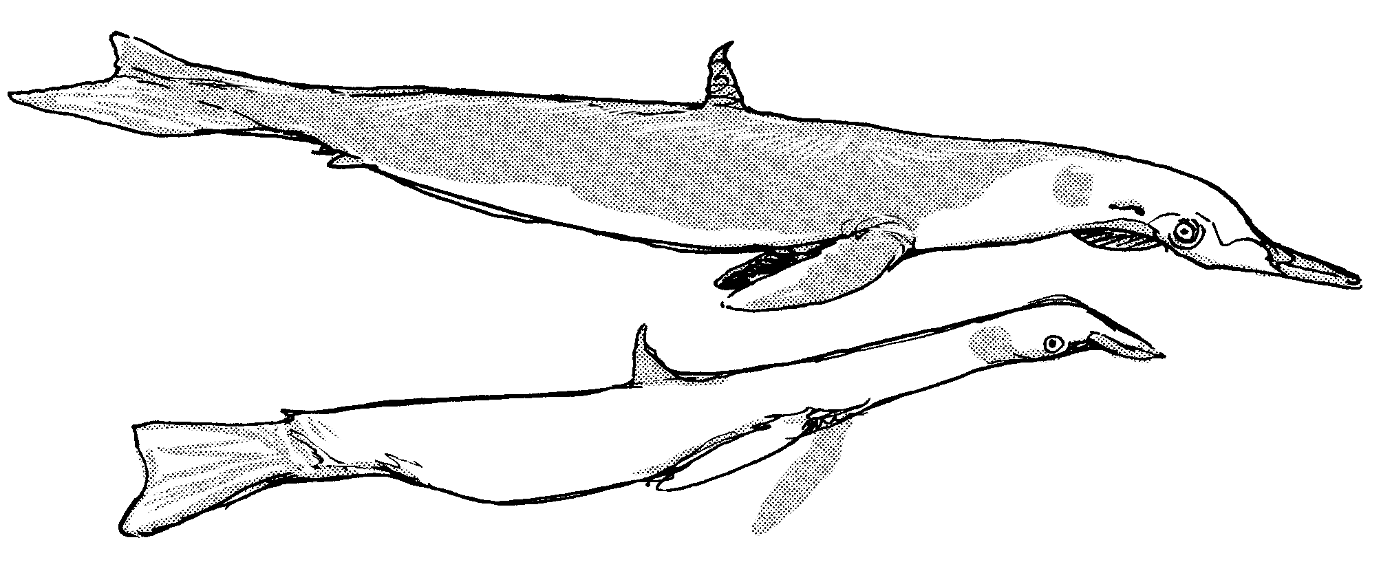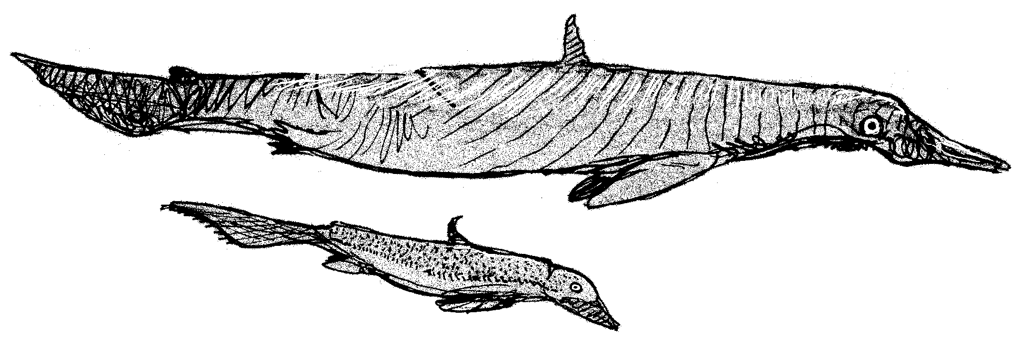 Unreferenced sketch of an ichthyosaur, a type of prehistoric marine reptile.