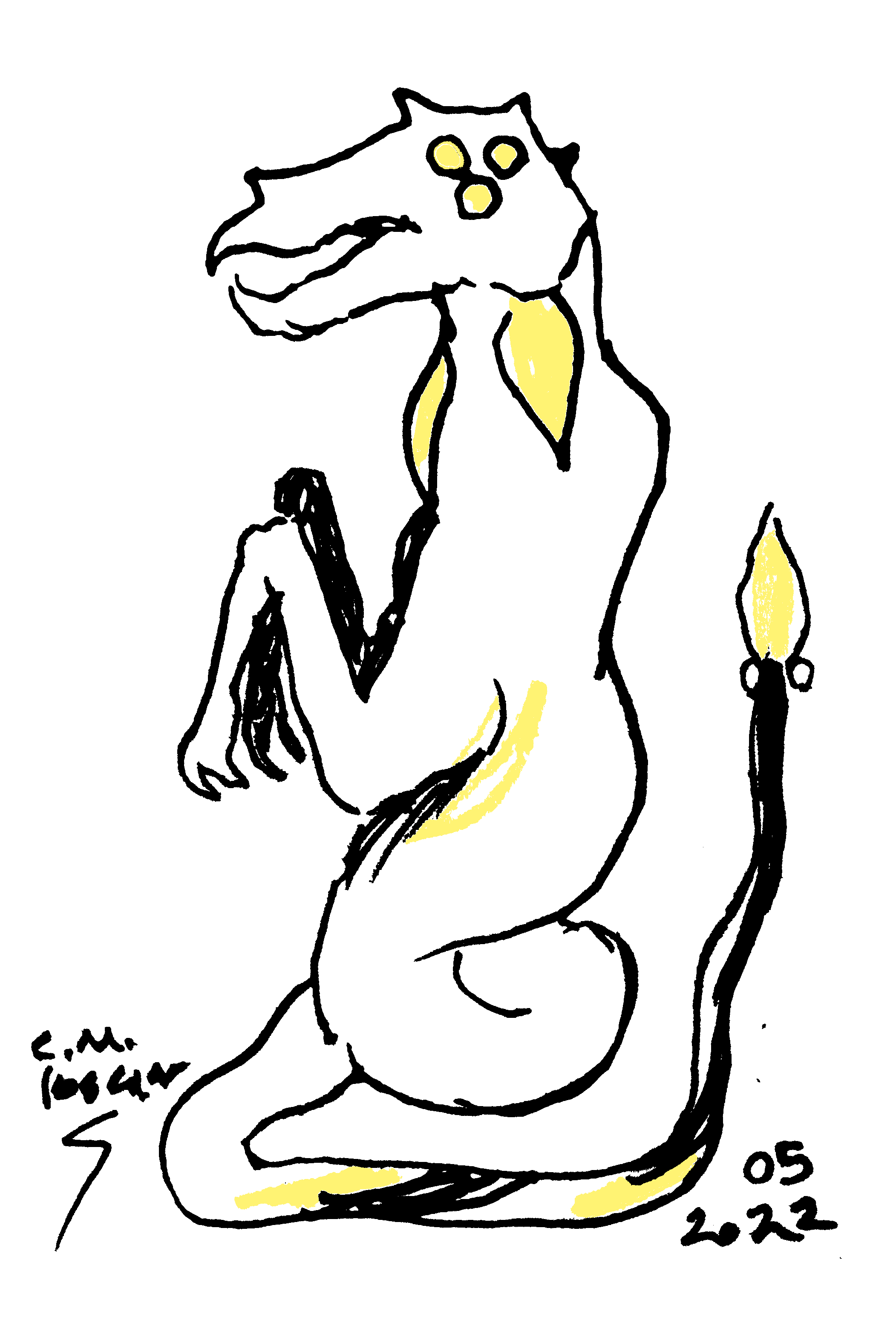 Sketch of a dragon-like creature inspired by Bronze Age Minoan symbolism.
