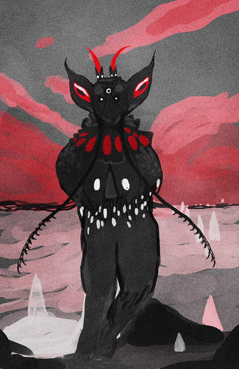 Sketch of satanic moth-spirit.