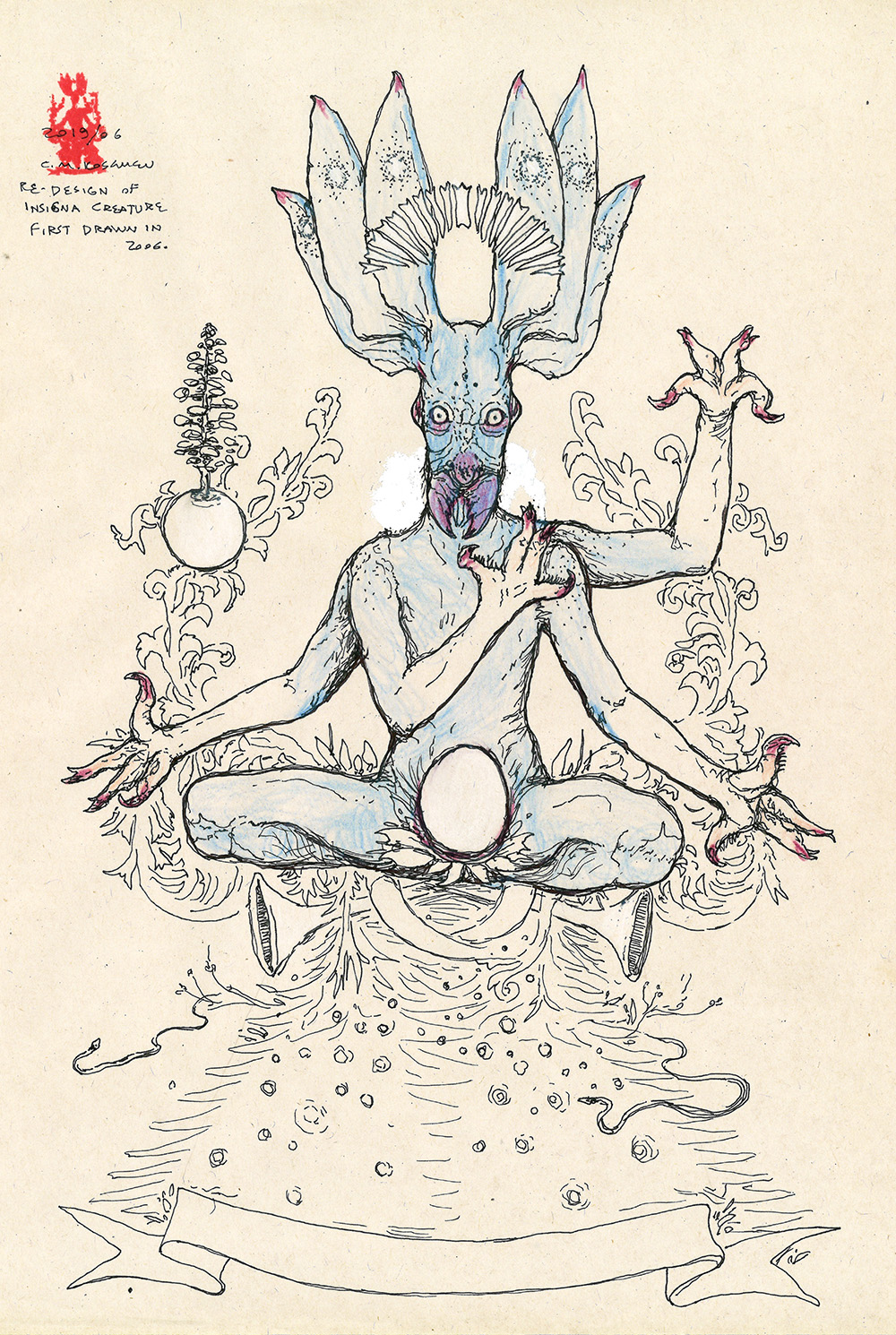Colour study, in pencil, of the "decal creature" that appears on the entrance page of this website.