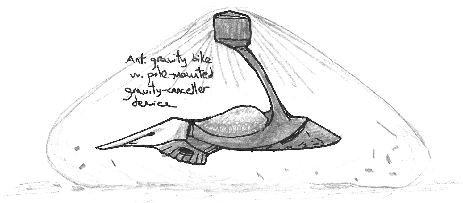 Doodles of "insect speeders", quasi-organic craft that resemble flying motorcycles.