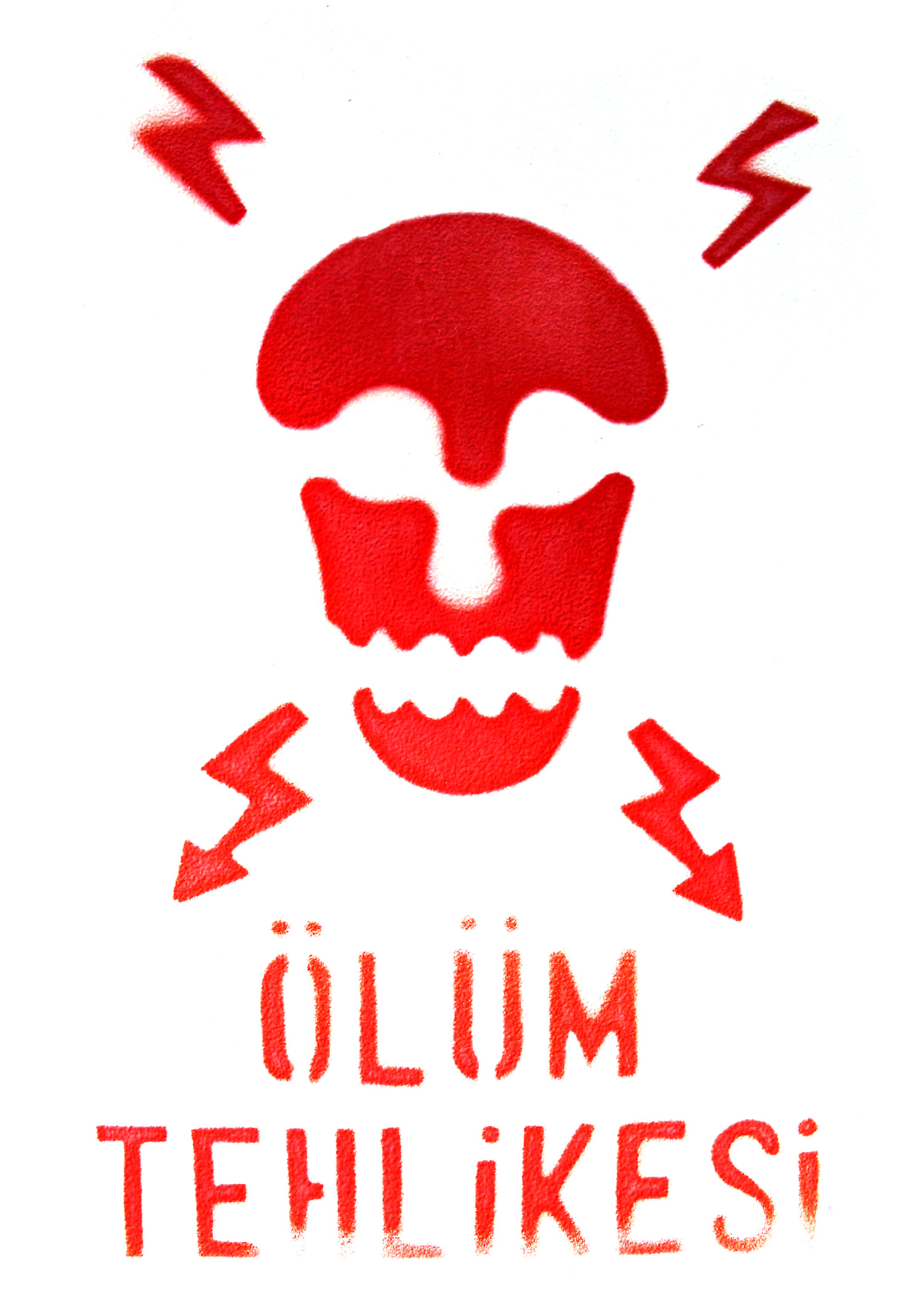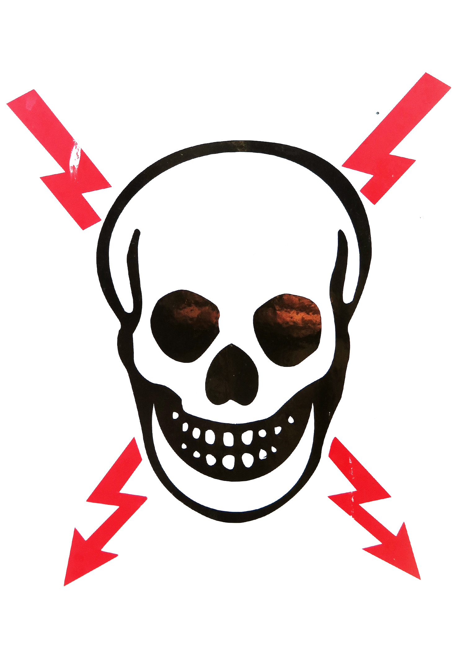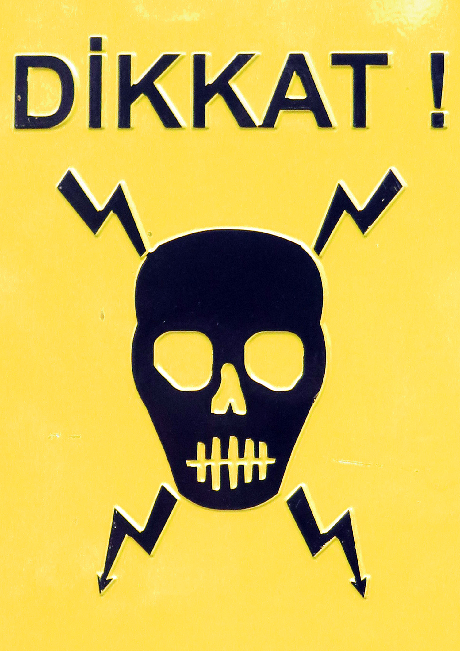 The skull and crossbones is a universally-recongised warning sign. In my college years, I spent considerable time photographing and "cleaning" images of skull-and-crossbones symbols from power transformers and other electrical equipment across Turkey. The subtle varieties seen in the numerous iterations of this simple symbol were admirable, eye catching, and in cases, grotesque.